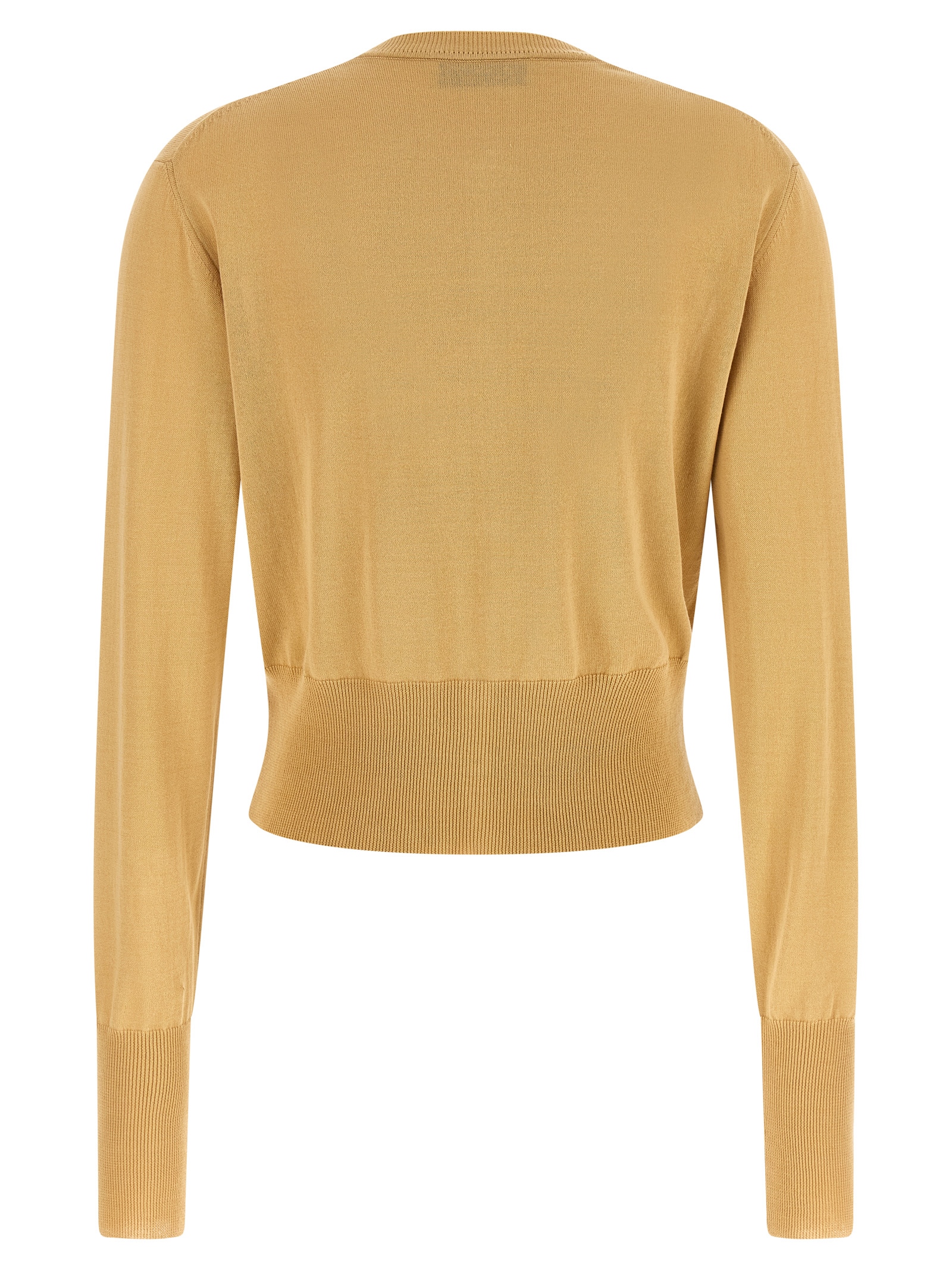 ‘Bea Cropped’ cotton cardigan, crop model, crew neck, ‘Orb’ logo embroidery and front button closure, long cuffed sleeves, band on the hem.