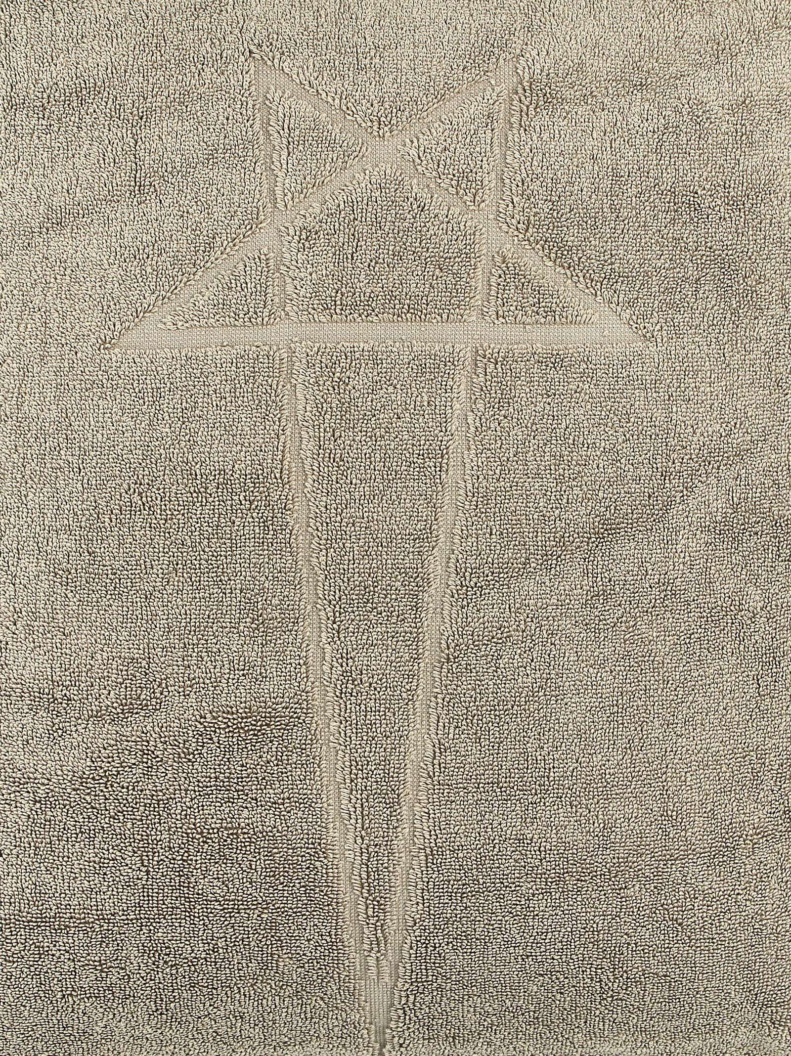 Beach’ cushion in heavy cotton terry with jacquard ‘Pentagram’ pattern.