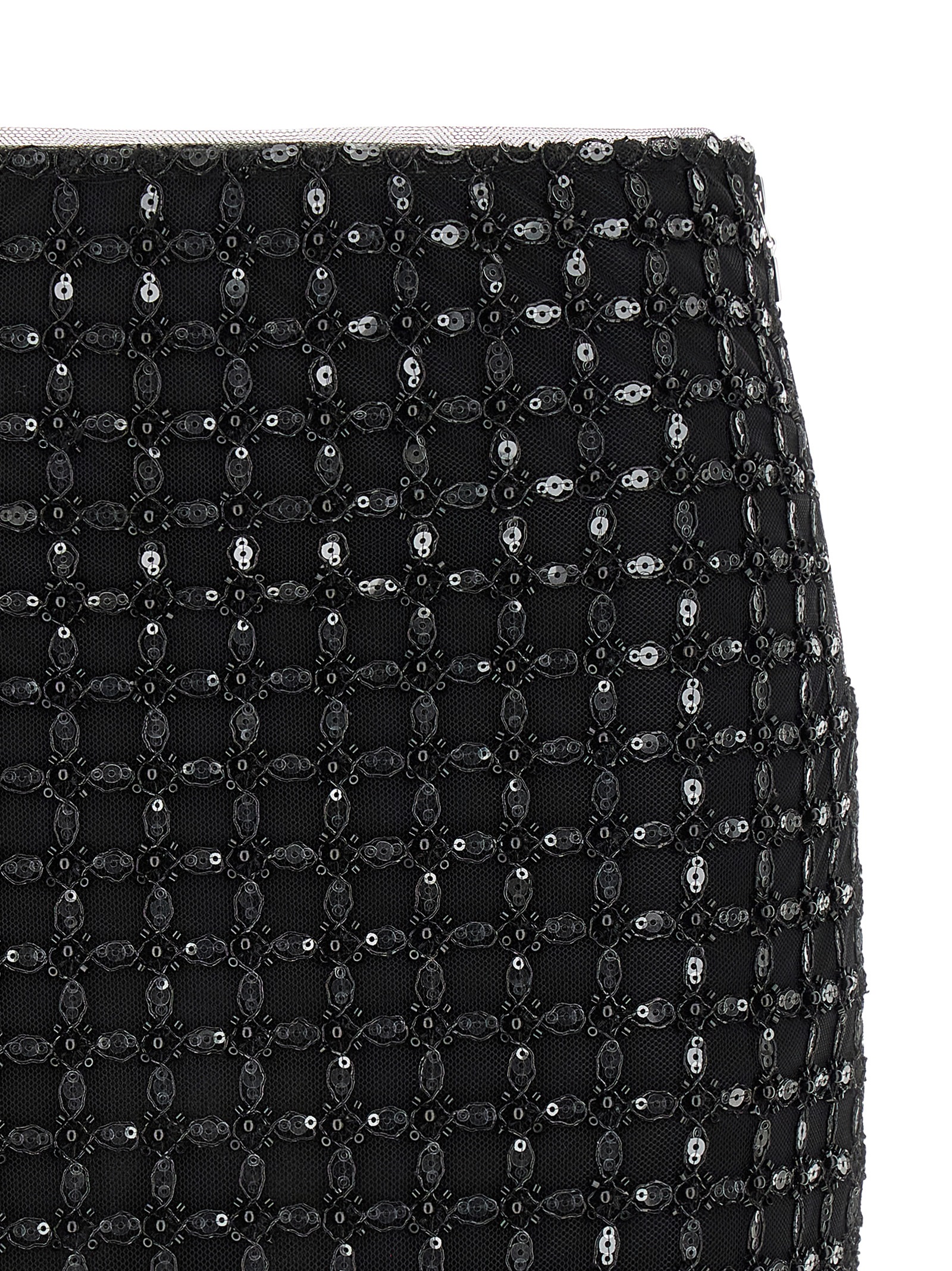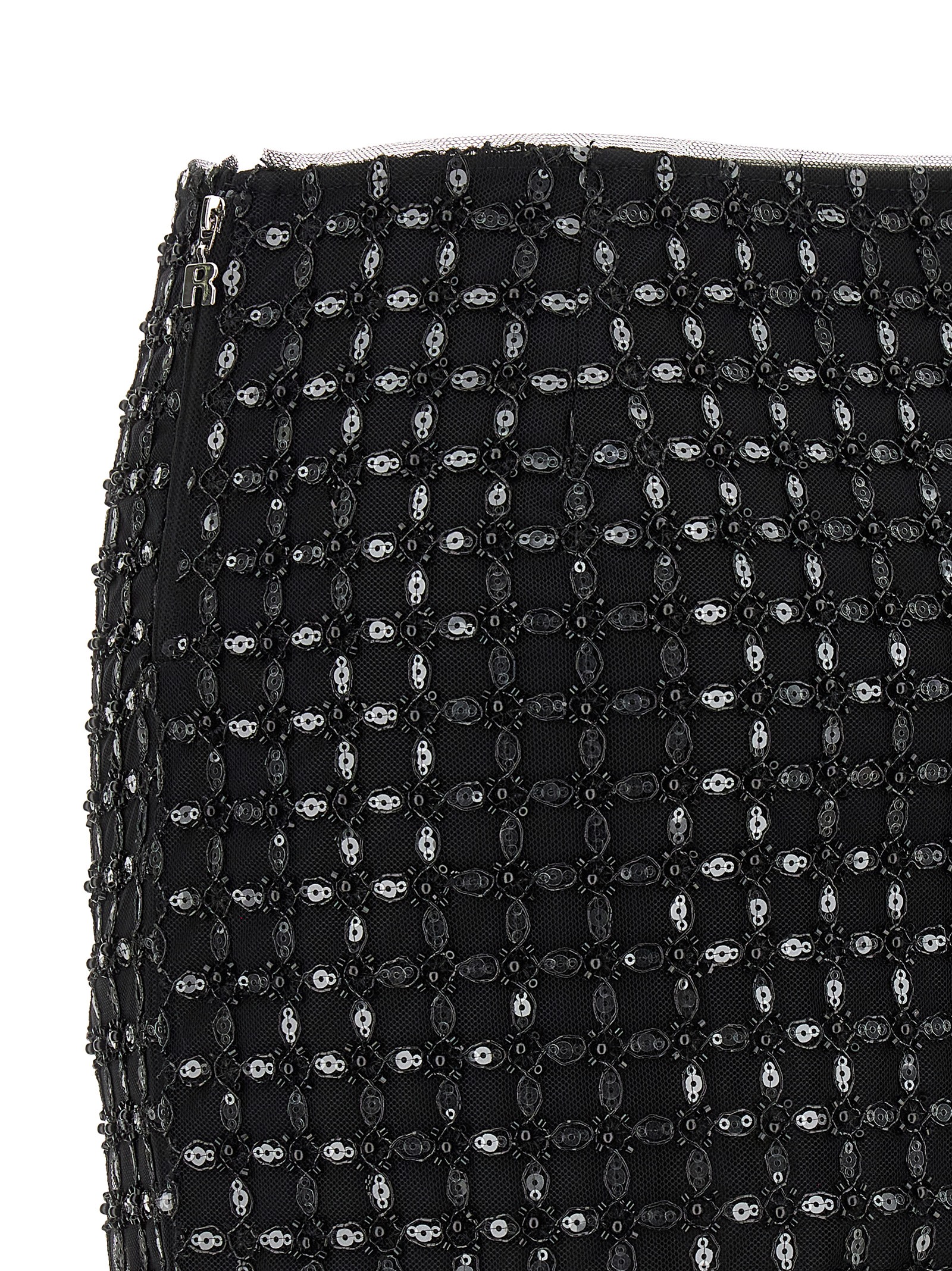 ‘Beaded’ mini skirt in embroidered tulle with side zip closure.