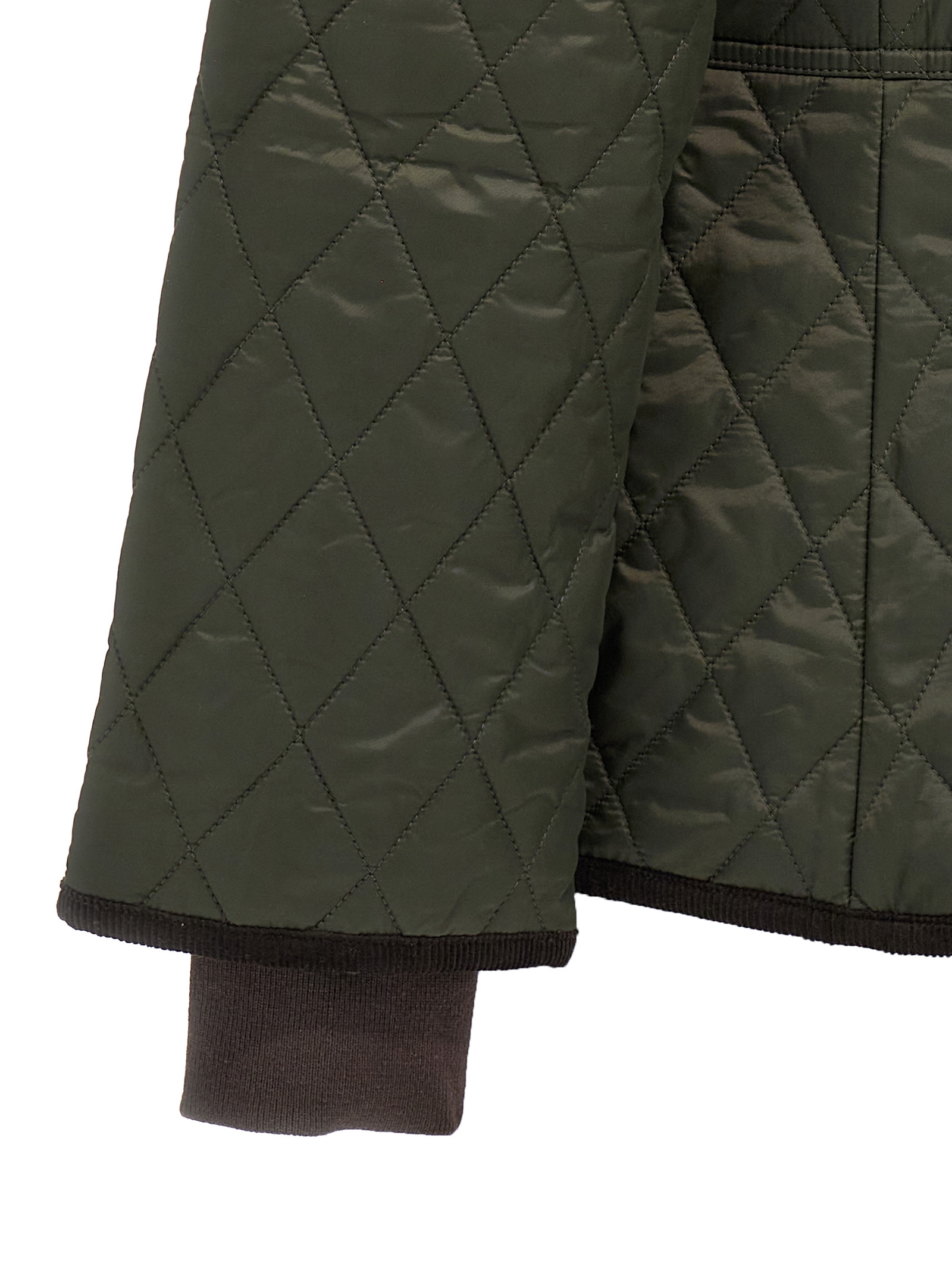 ‘Beadnell’ quilted nylon jacket with corduroy collar, pockets, zip closure, long sleeves with knitted cuffs, logo embroidery.