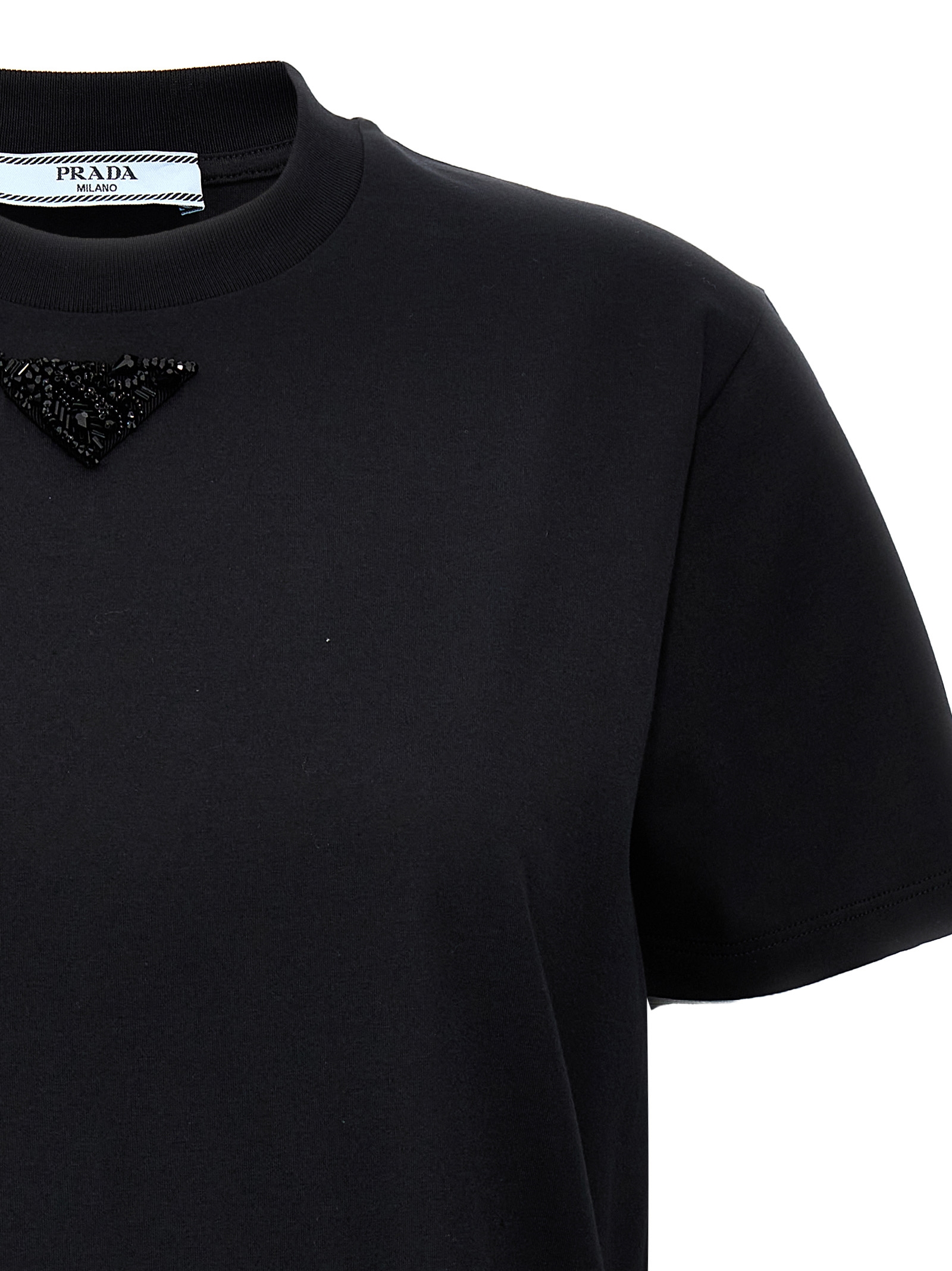Cotton T-shirt, logo with front beads, crew neck, short sleeves.