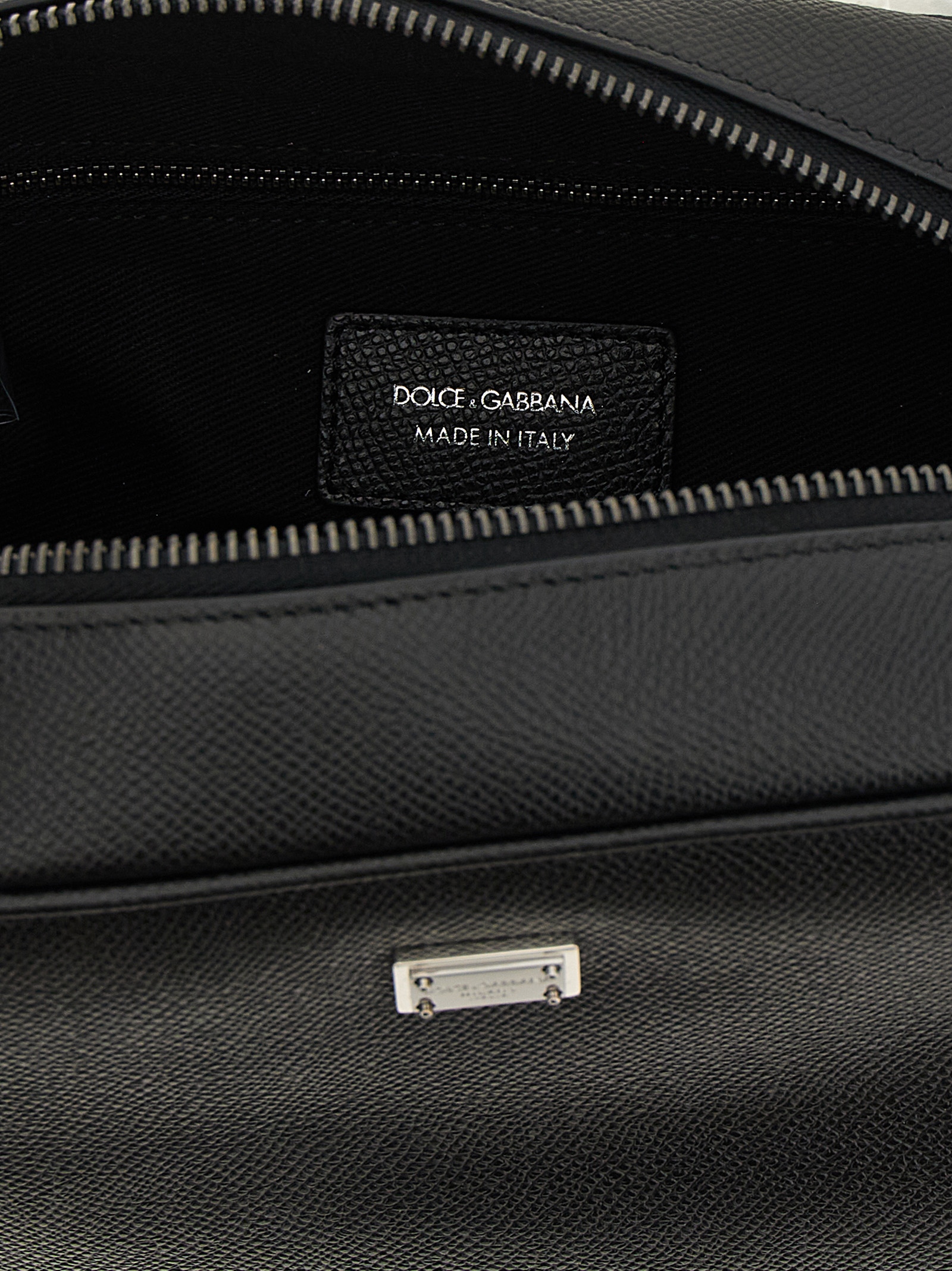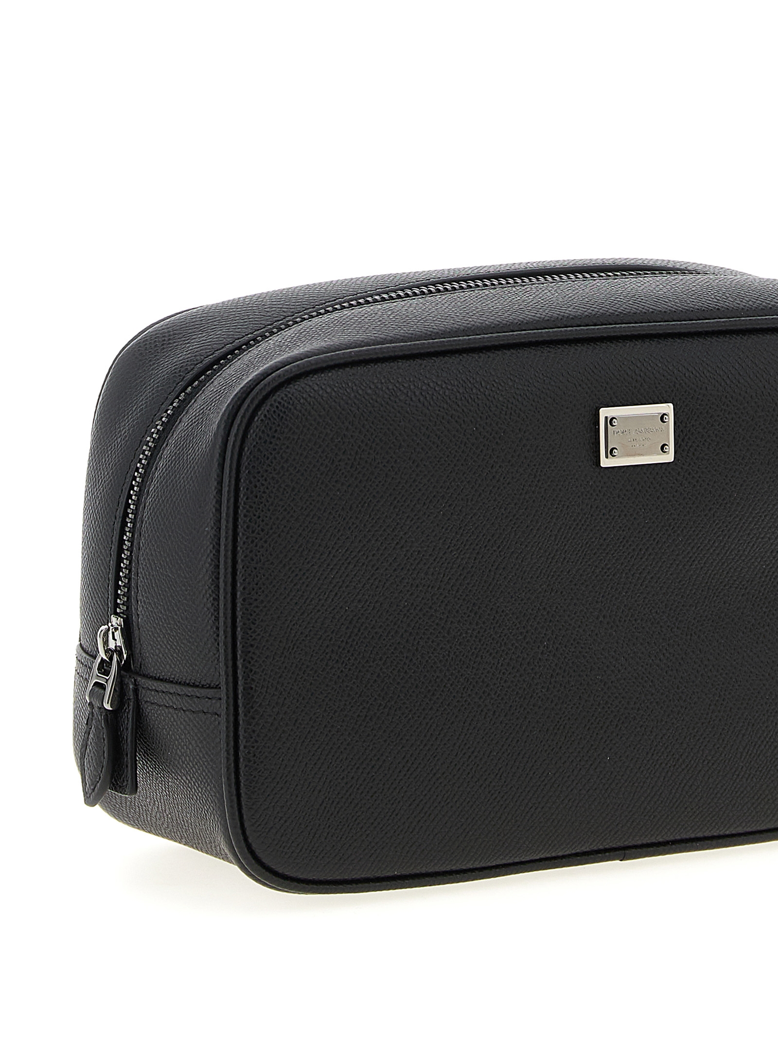 Alpina calf leather Sicily beauty bag with metal tag with front engraved logo, top zip closure, handle.