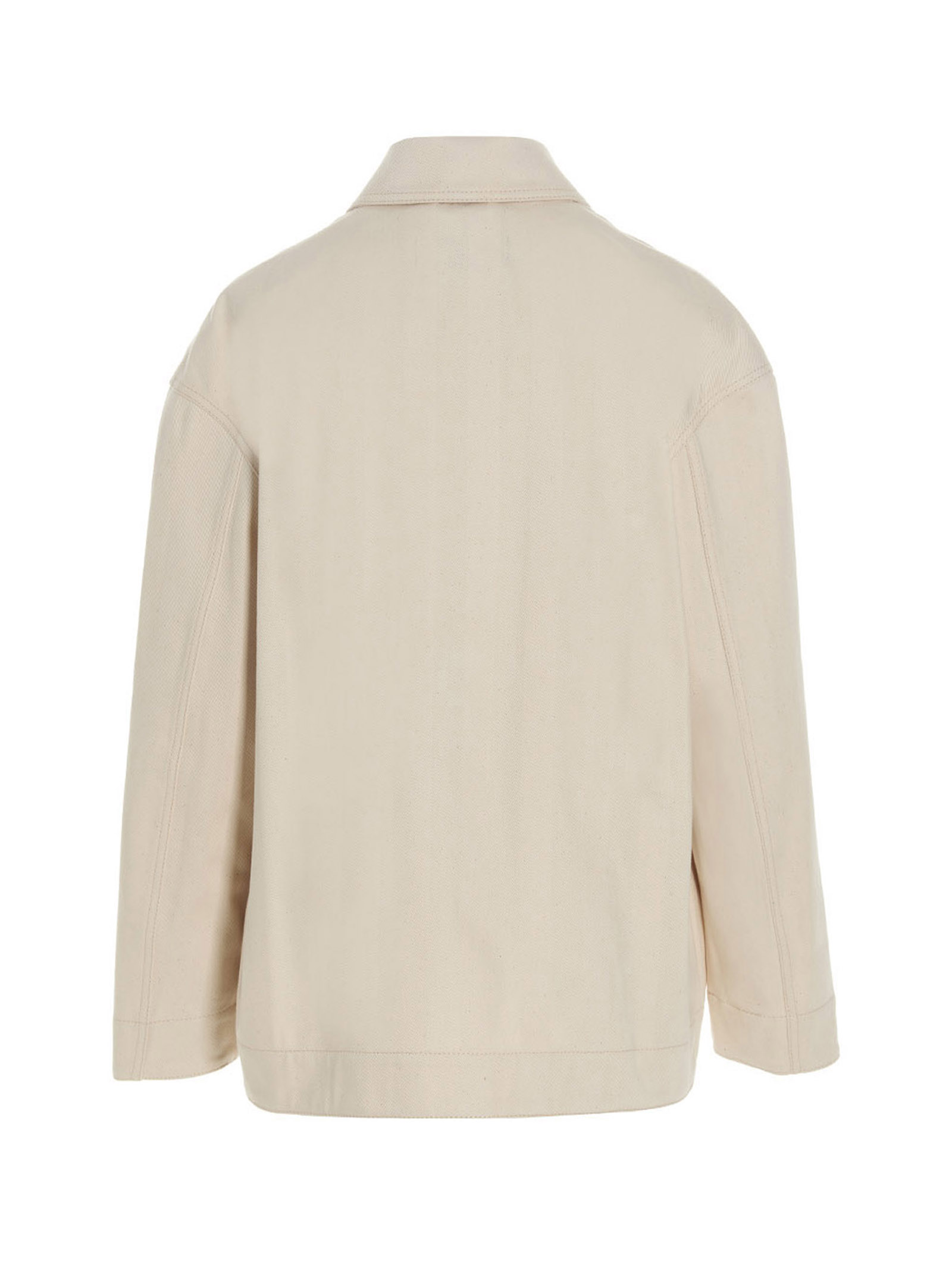 ‘Belli Dentro’ denim cotton jacket with a button closure, maxi pockets, long sleeves, and inner striped print.