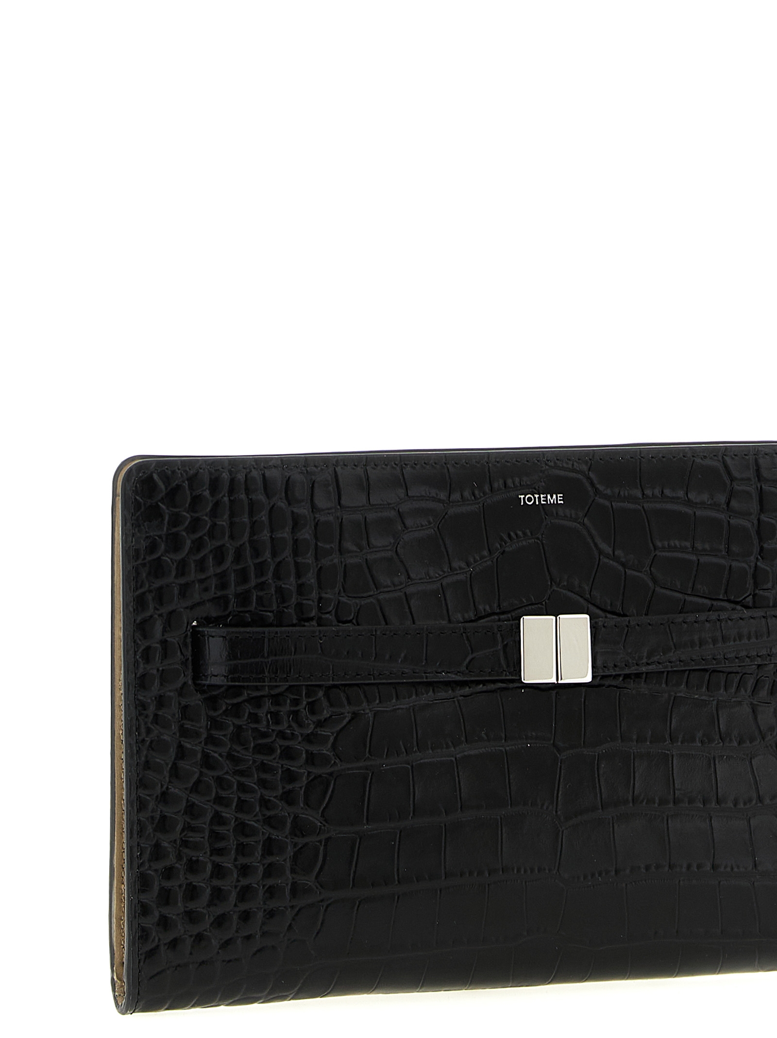 ‘Belted Leather’ crocodile-print leather crossbody bag with flat model with strap and metal buckle, automatic closure, adjustable leather shoulder strap and front logo print.