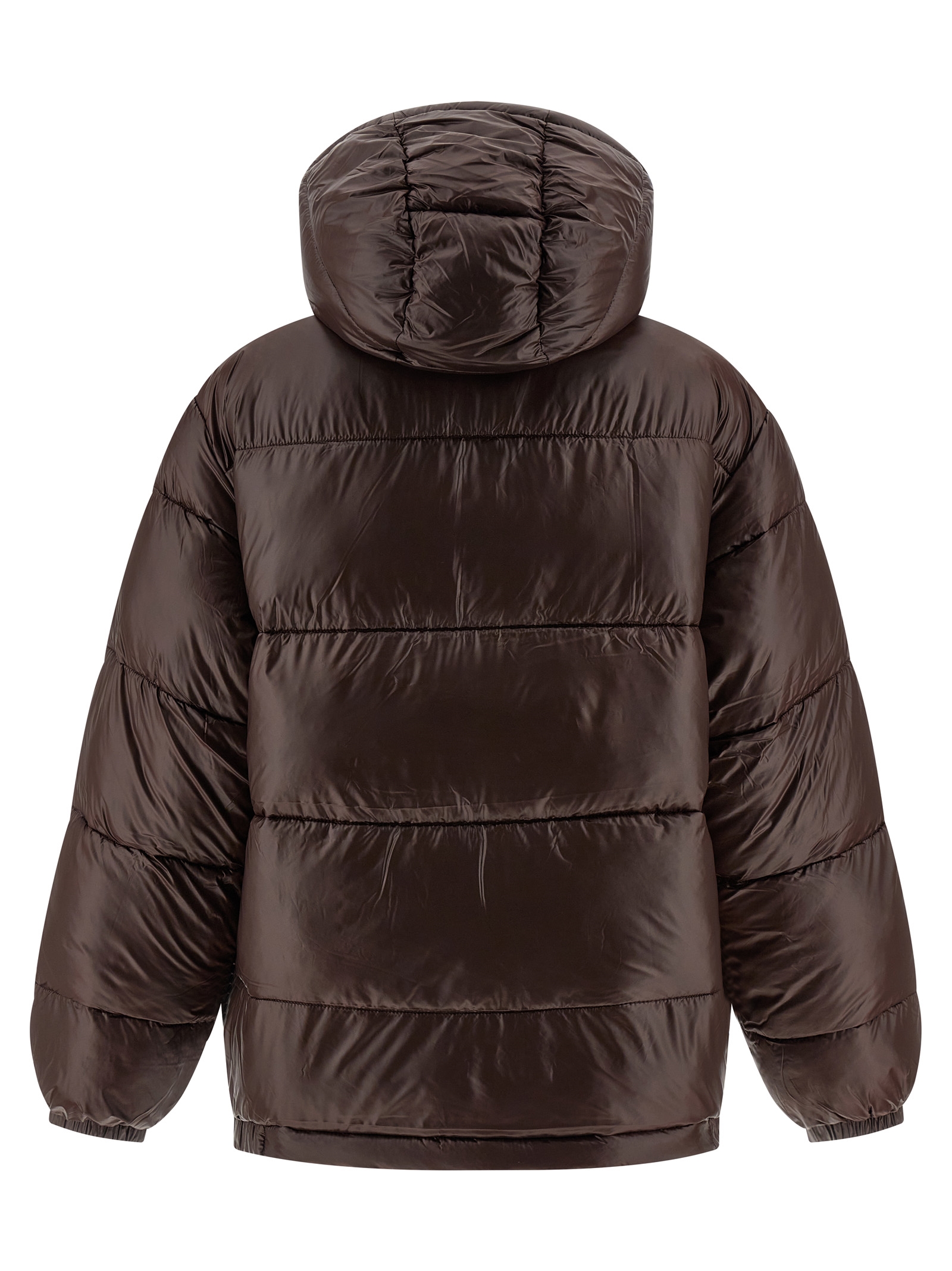 ‘Benson’ quilted and padded nylon down jacket, adjustable and removable hood, standing collar, logo patch and front zip and snap button closure, pockets, long sleeves with elastic cuffs, elastic hem.