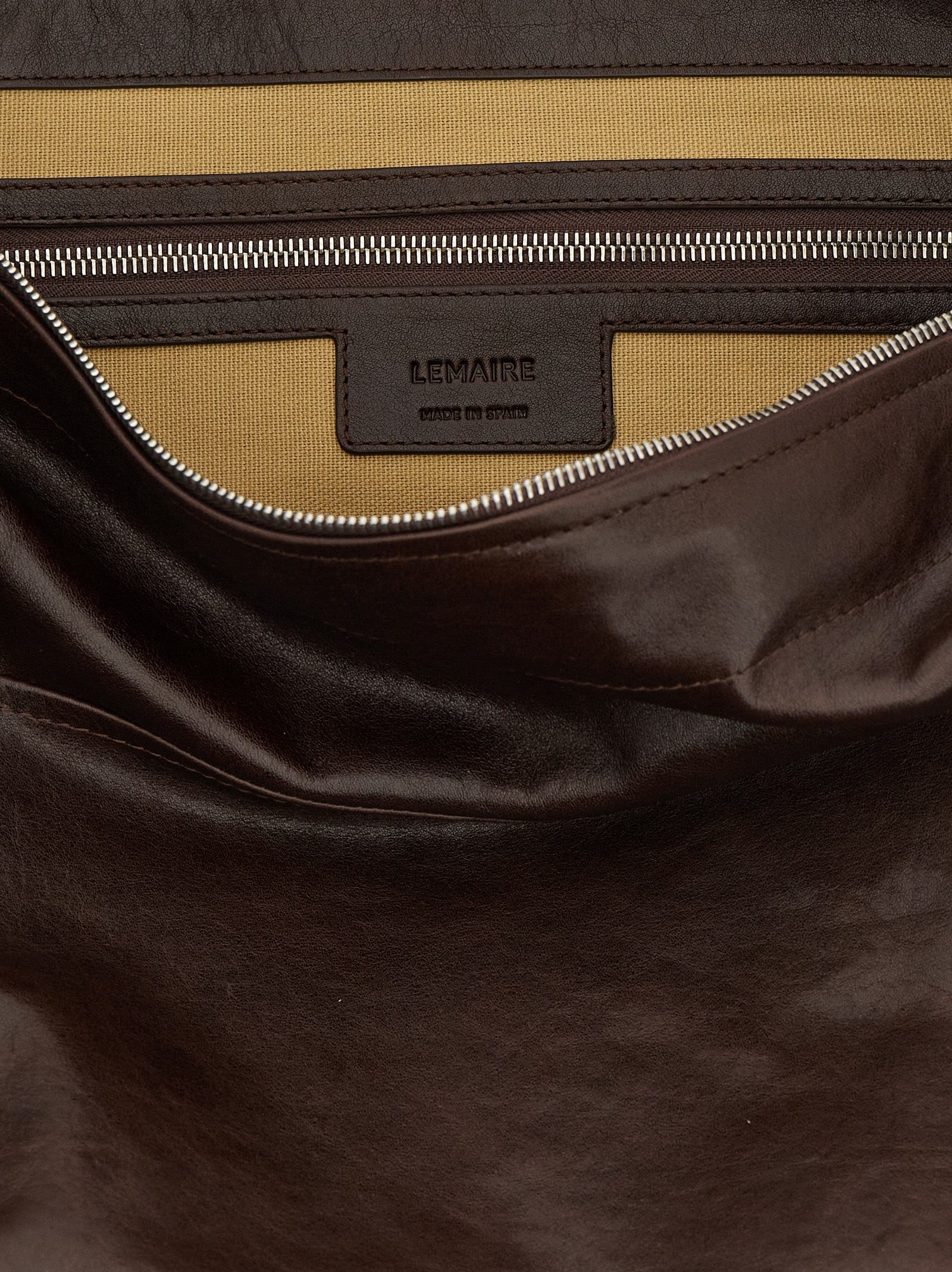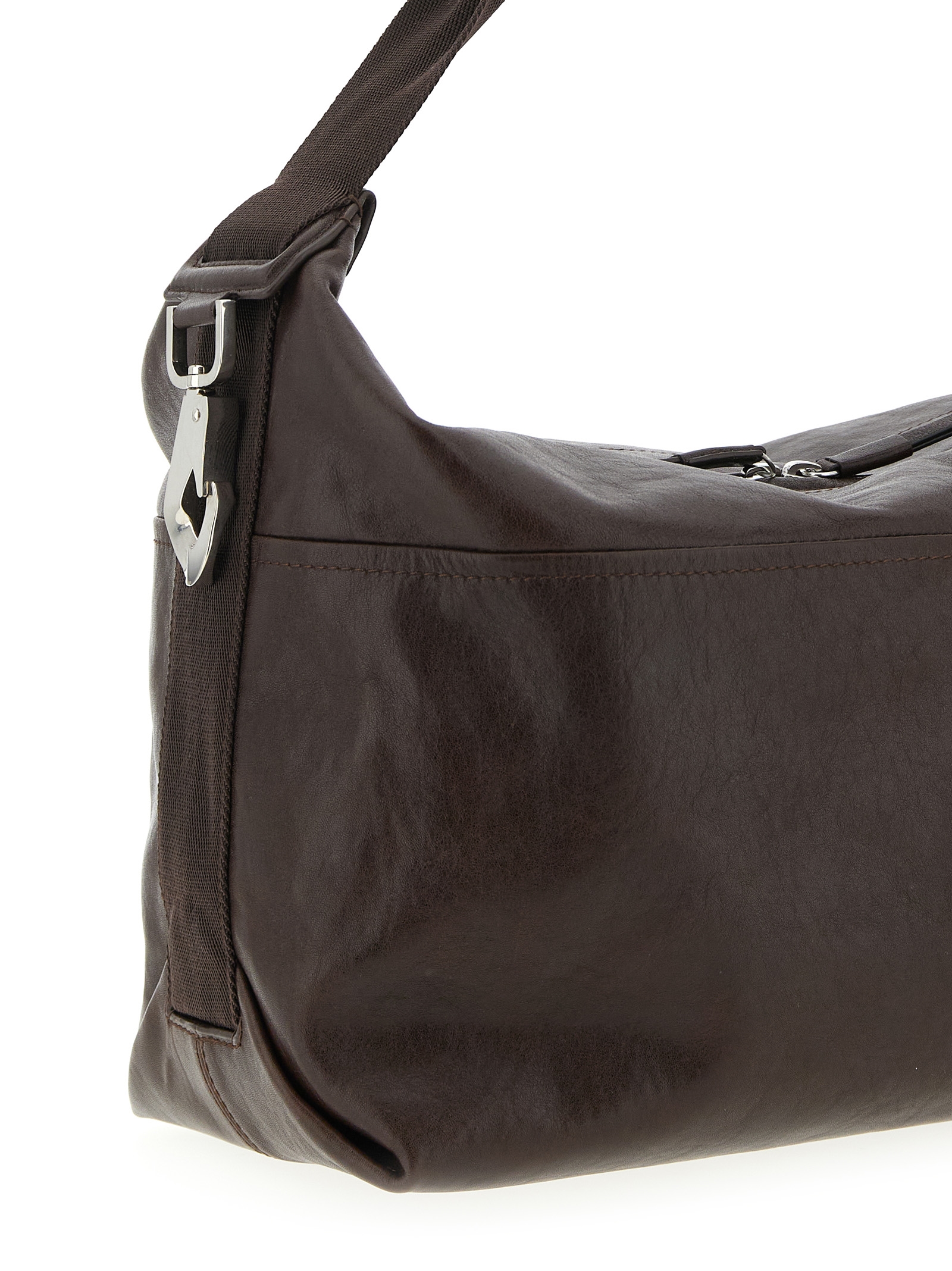 Berlingot Hobo Bag’ leather shoulder bag, fixed nylon handle, side pockets, double tie rod zip closure, and metal details.