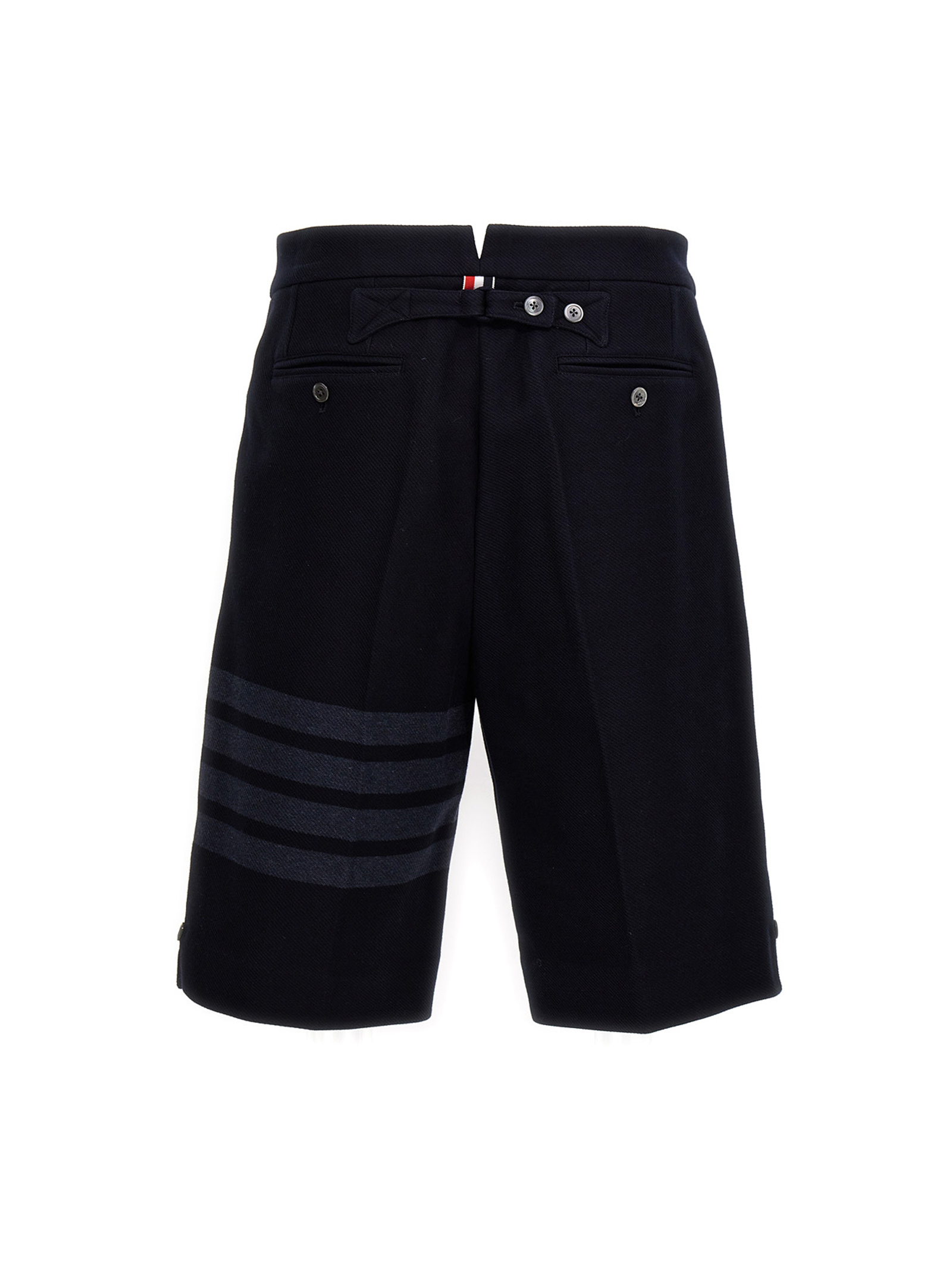 Tech twill double face bermuda shorts with ‘4 Bar’ detail on the leg, button and hook-and-eye closure, pockets and a central crease.