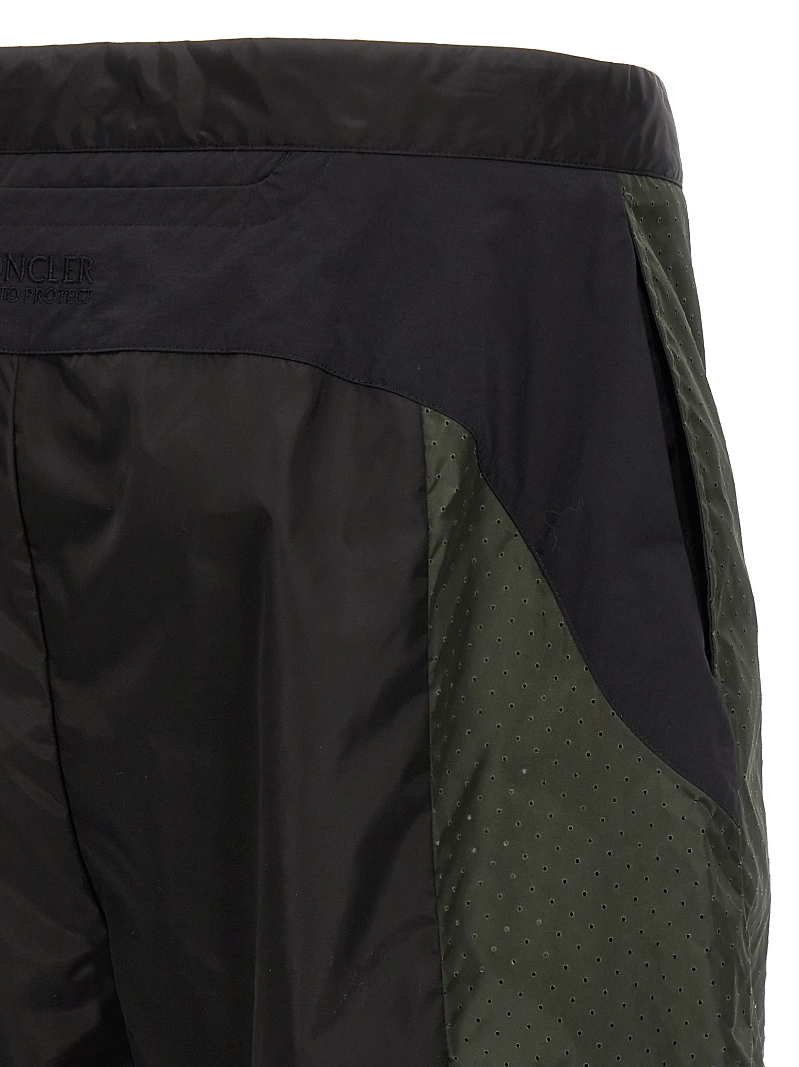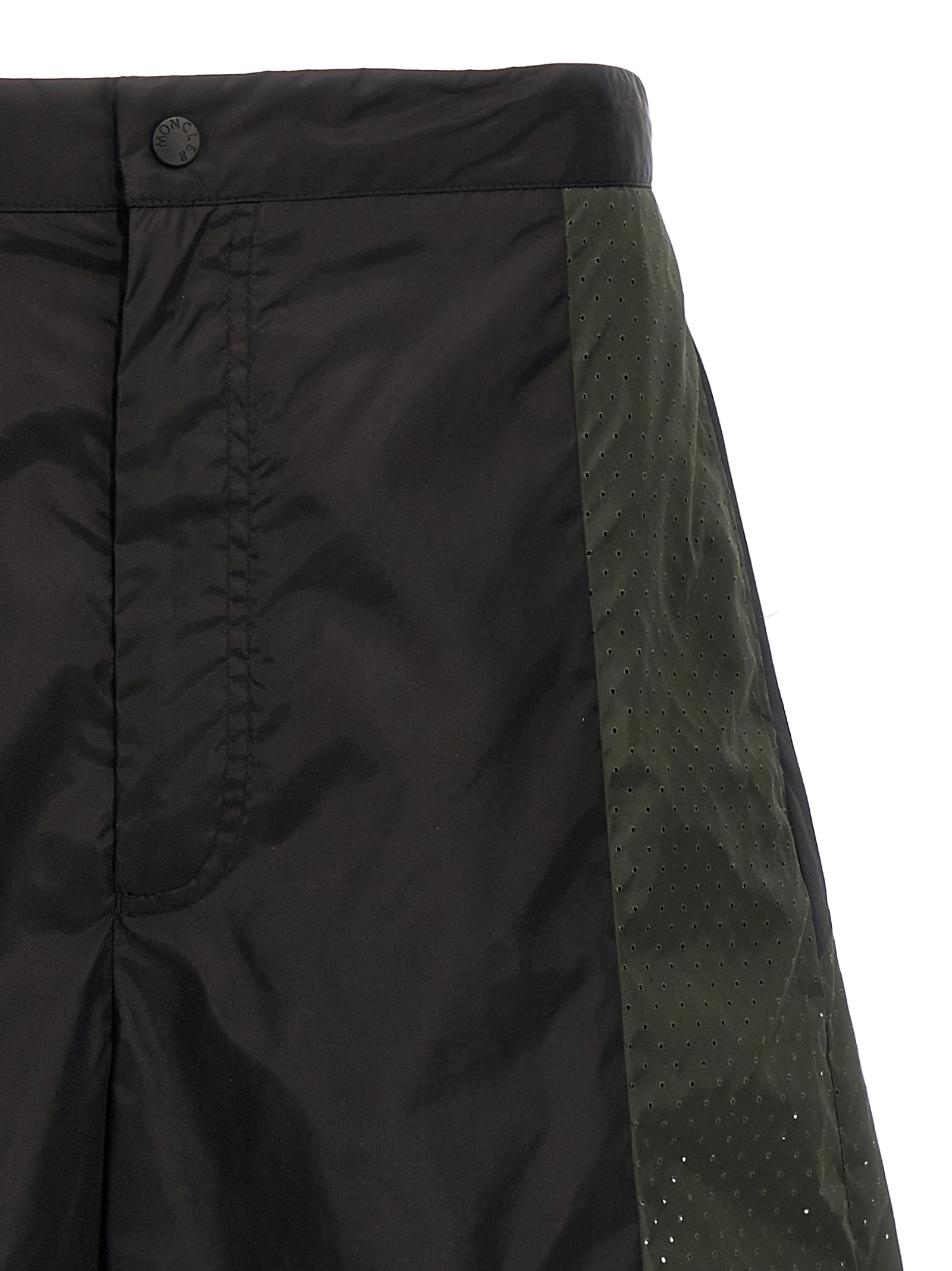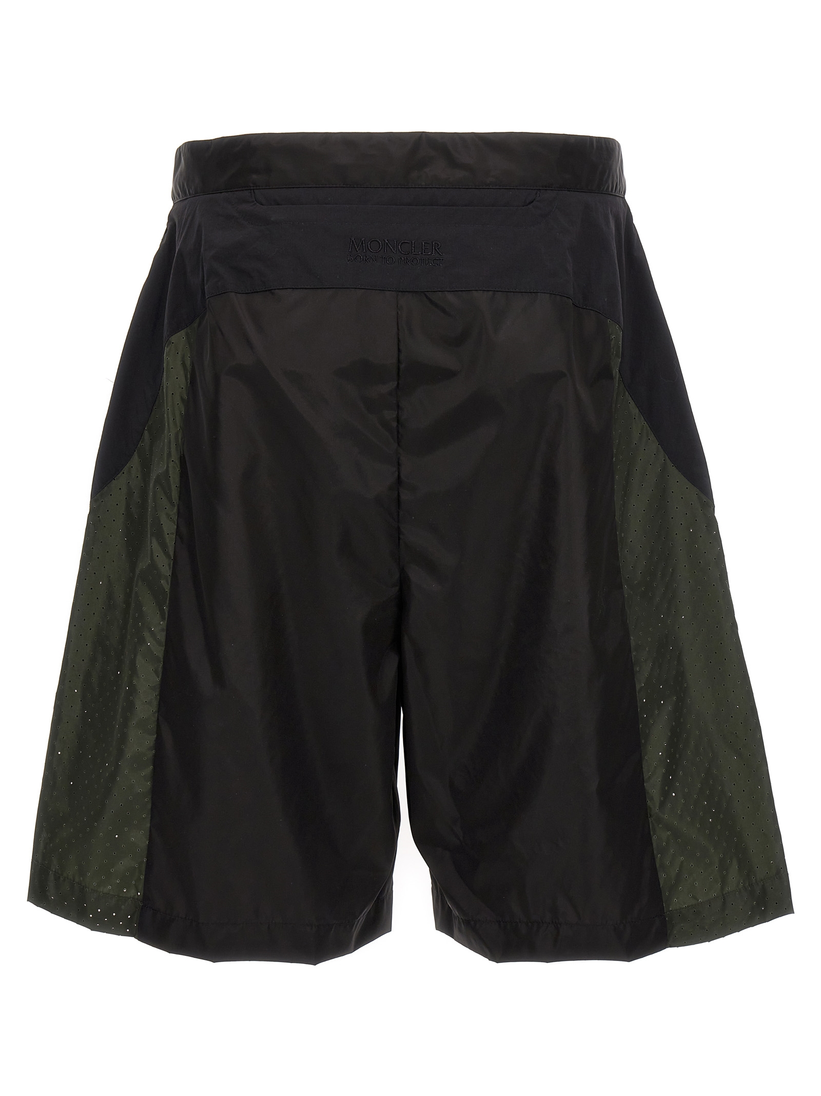 Born To Protect capsule nylon bermuda shorts with contrast openwork inserts, zip and button closure, pockets, front logo patch and back embroidered logo.