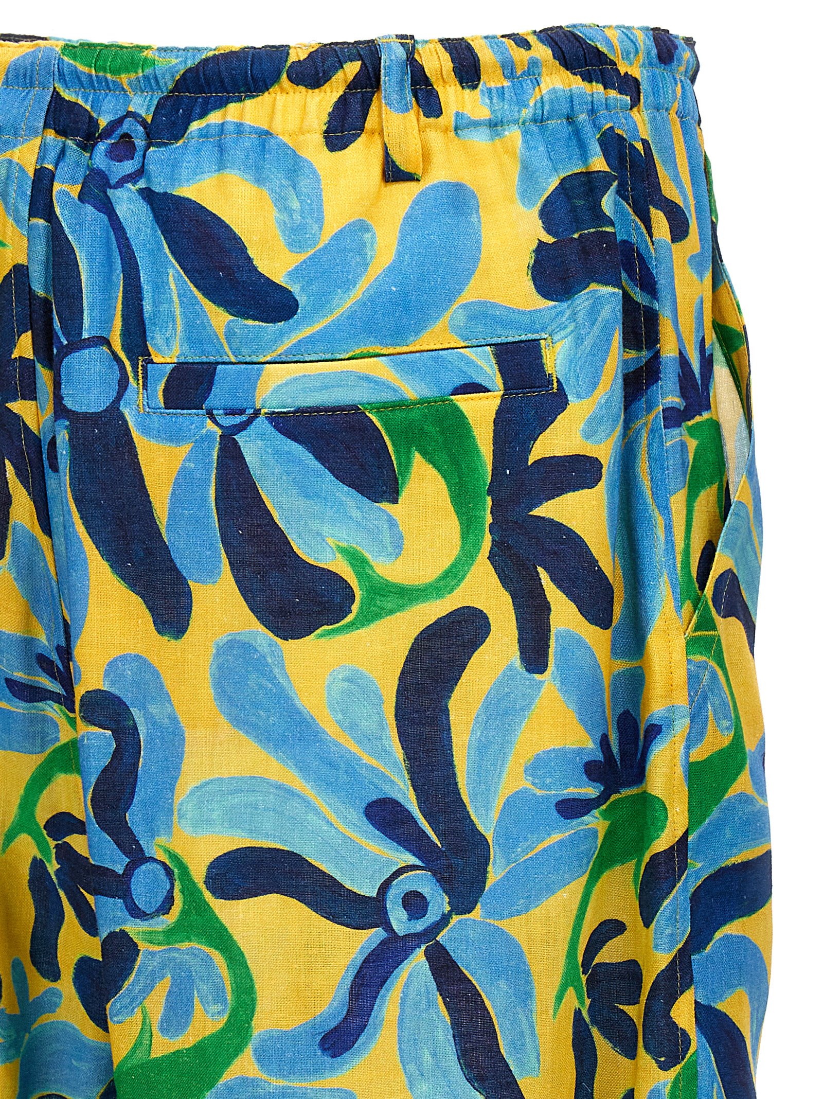 No Vacancy Inn’ high Summer capsule linen and viscose bermuda shorts with all-over print, elastic and drawstring at the waist, a zipper and button closure, pockets.