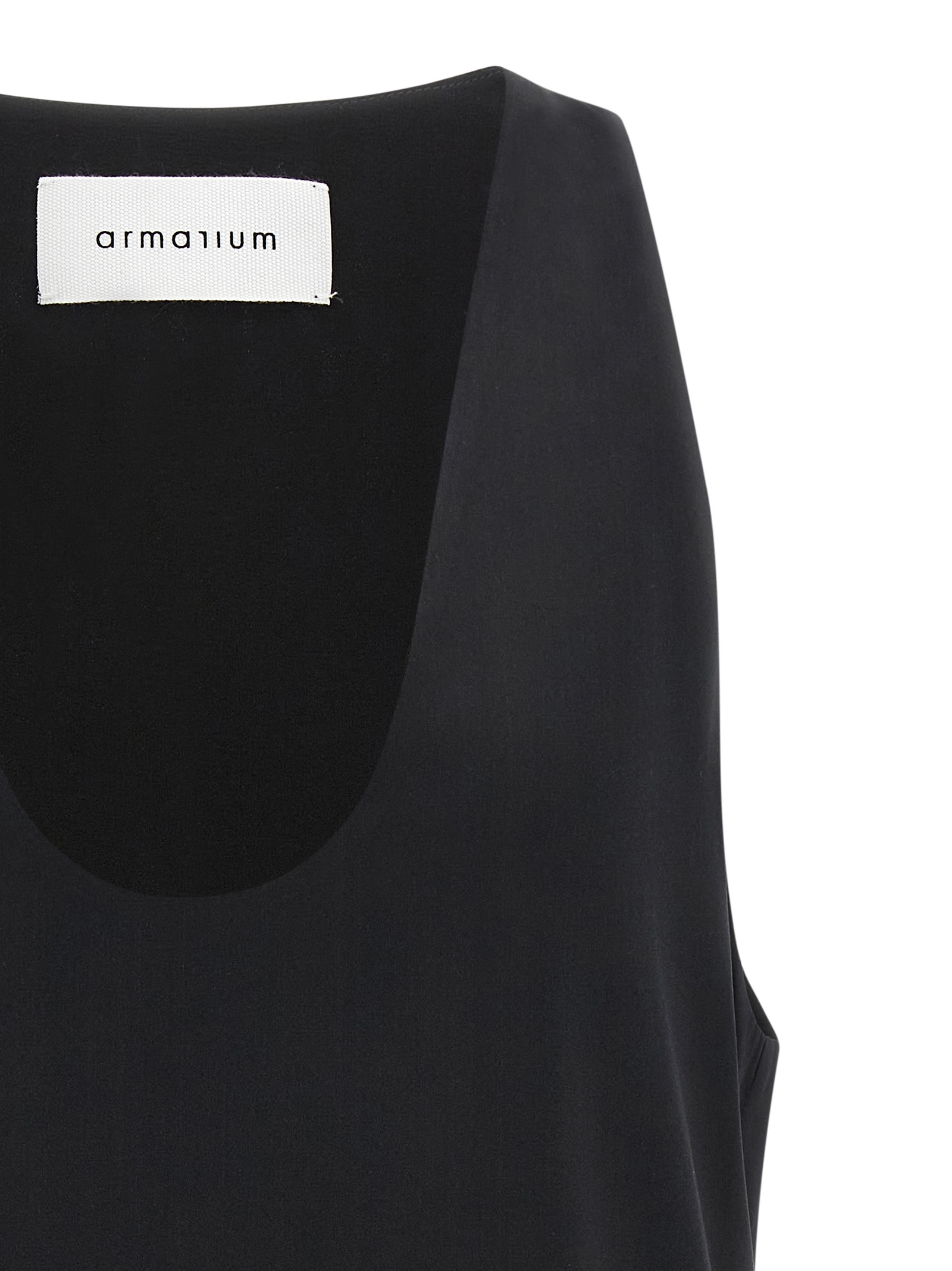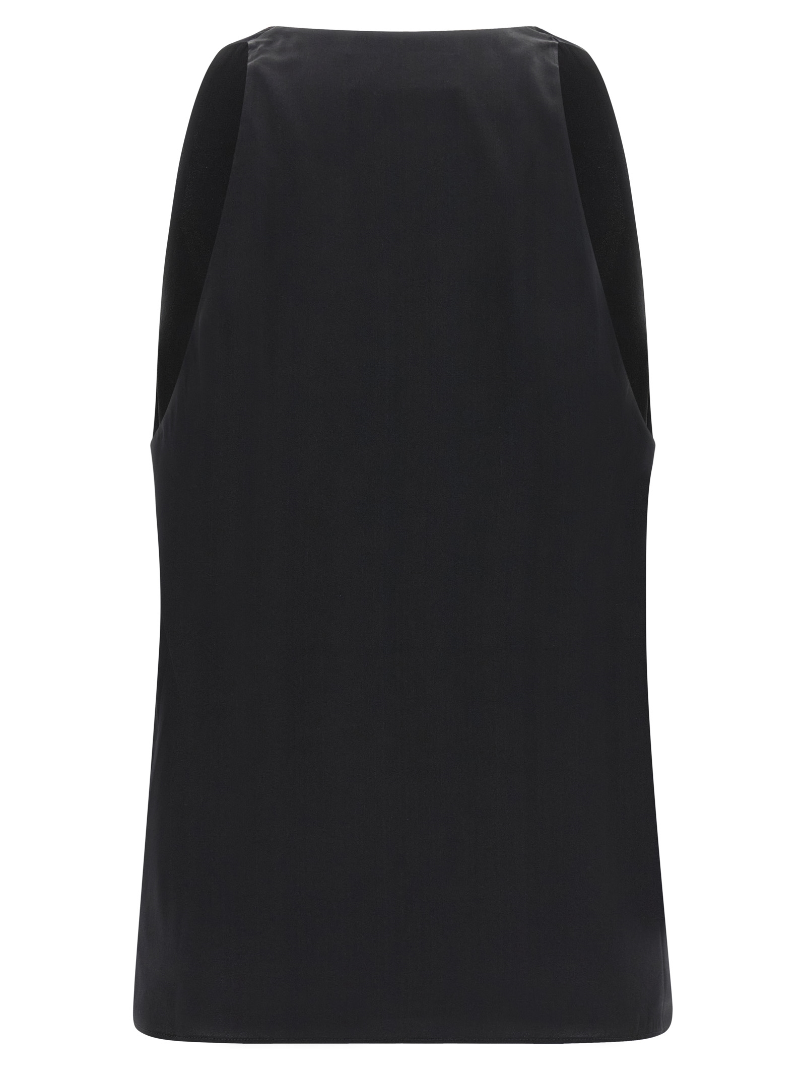 ‘Bianca’ silk satin top with lightweight semi-transparent silk lining, straight model with deep front neckline, sleeveless.