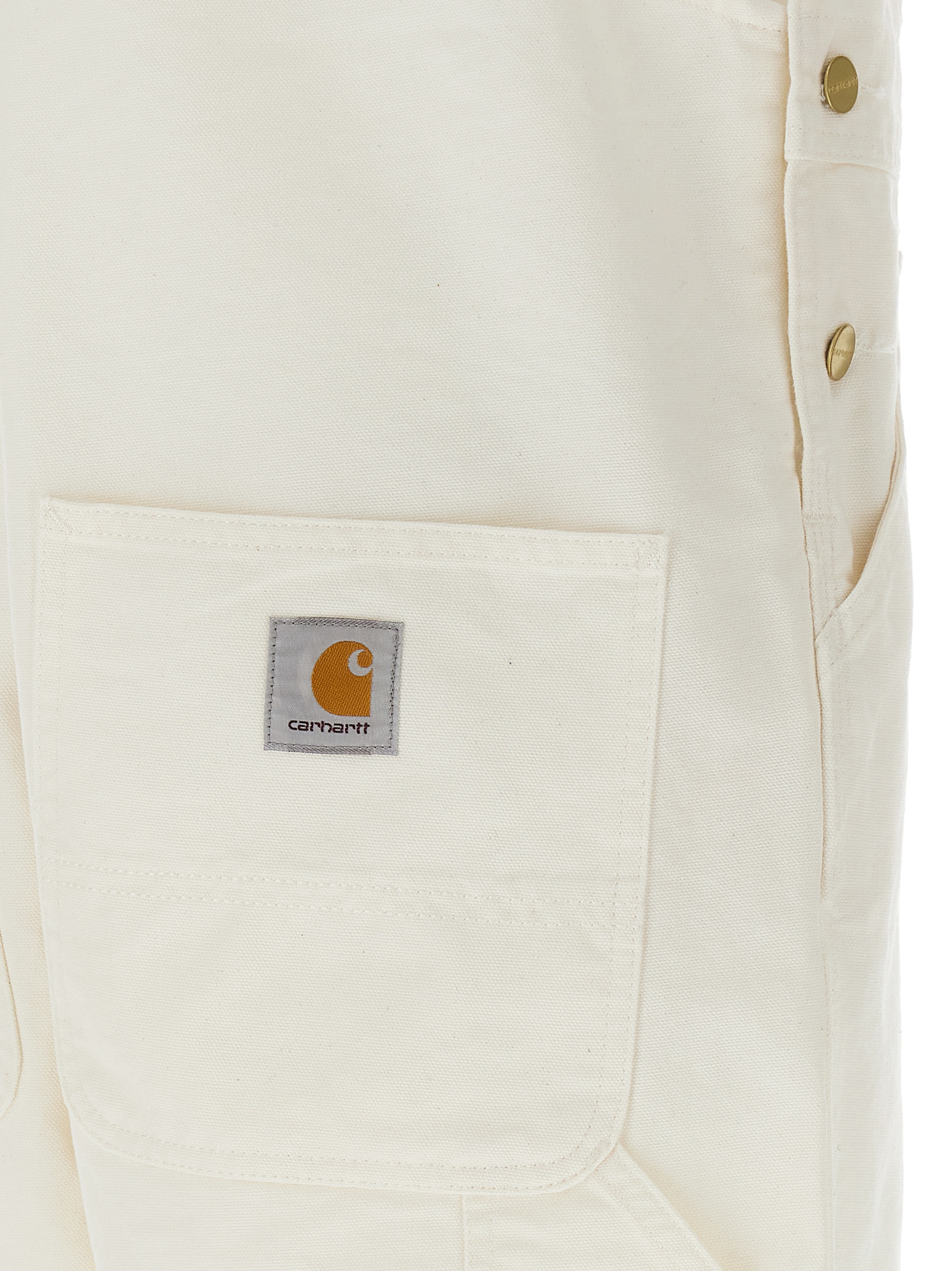 Norco cotton denim ‘Bib Overall’ jumpsuit with front logo patch, adjustable elastic braces, front flap zip closure, adjustable side buttons, pockets, straight leg.