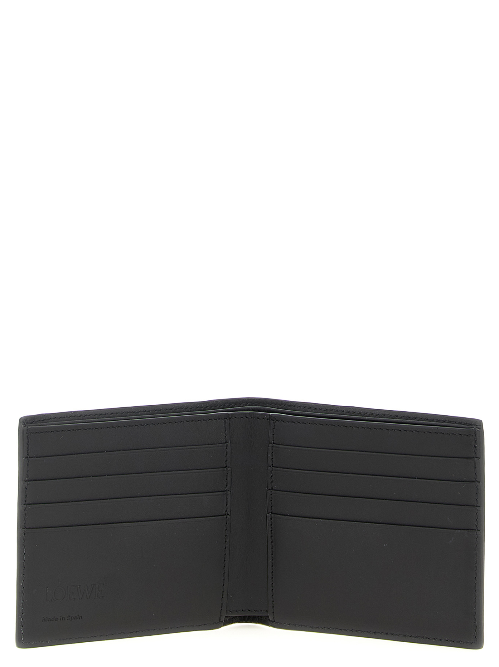 ‘Bifold’ wallet in grained calf leather, front embossed Anagram logo, book opening.