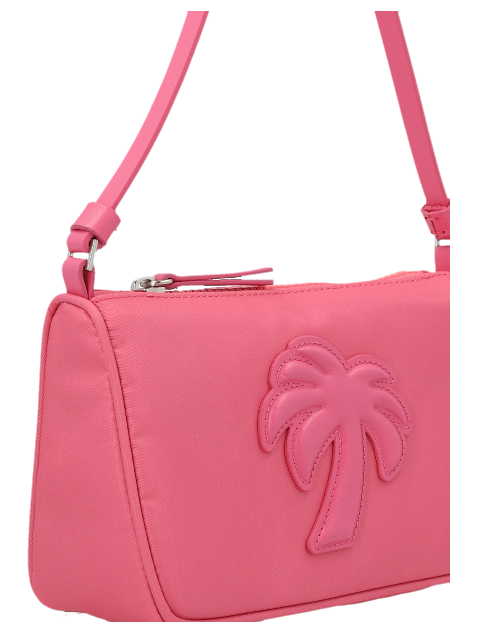 ‘Big Palm’ leather handbag with leather trims, zip closure, top handle.dle.