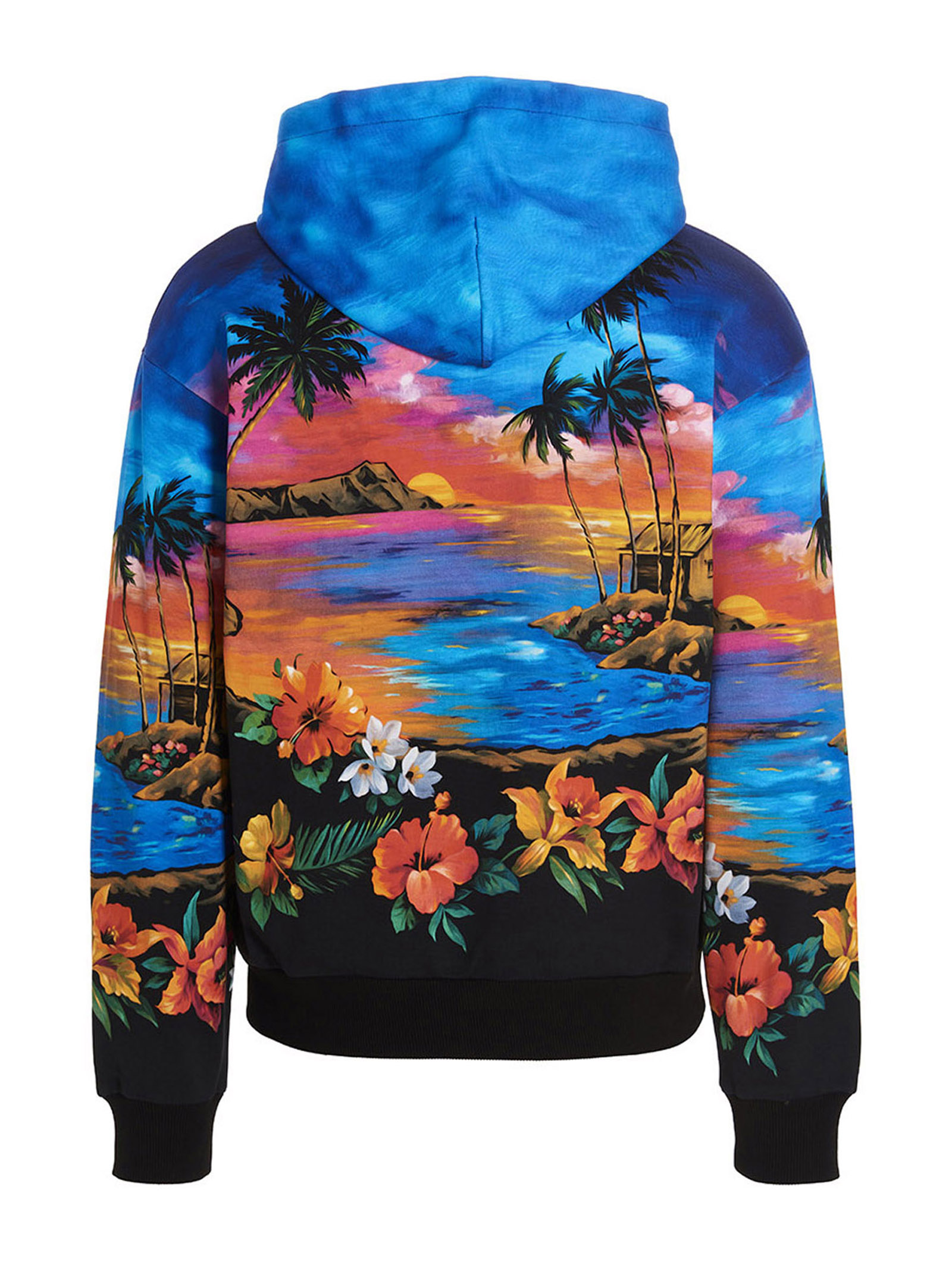 Black Sicily’ cotton hoodie with all over print, kangaroo pocket, and long cuffed sleeves.