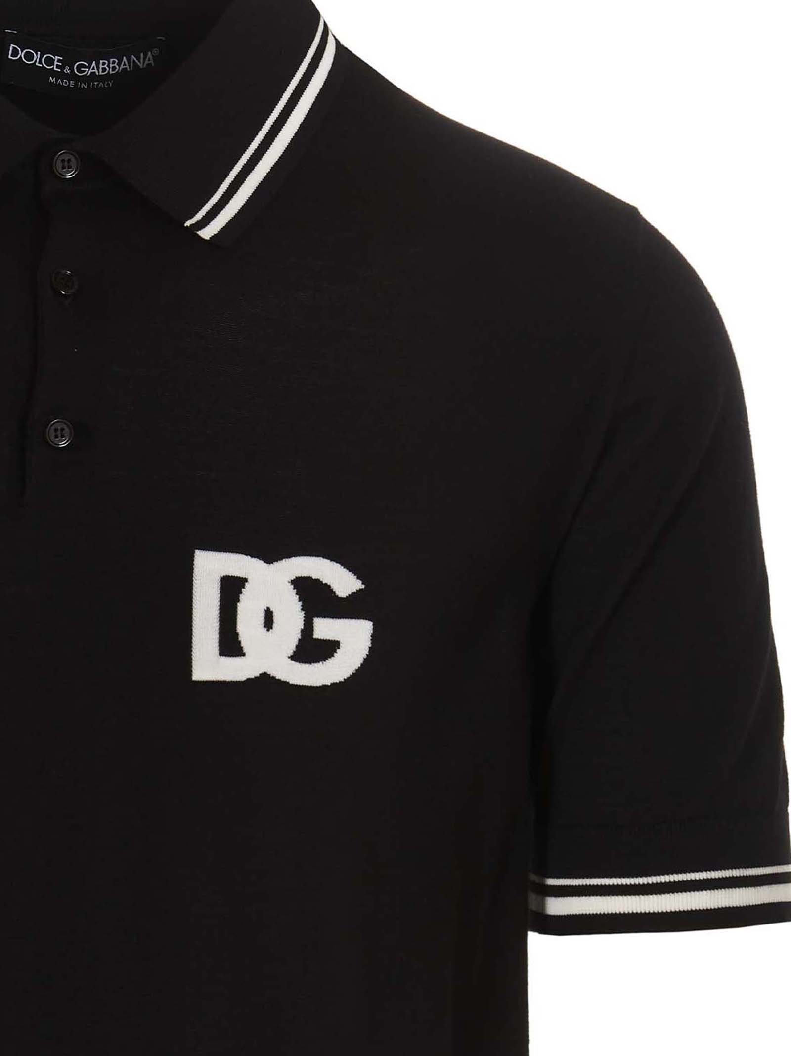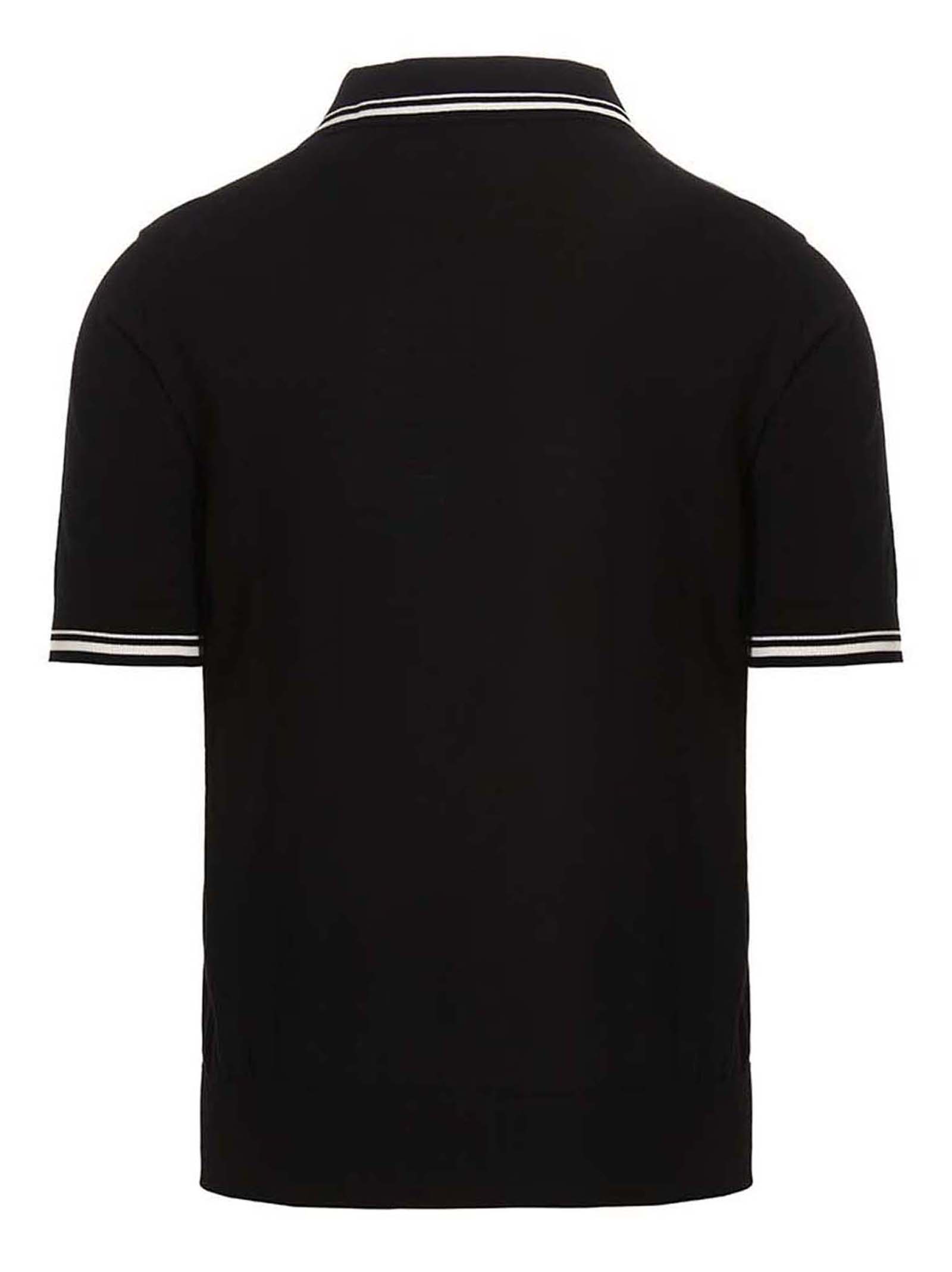 ‘Black Sicily’ polo shirt in wool blend with contrast logo at the front, contrast trims and short sleeves.