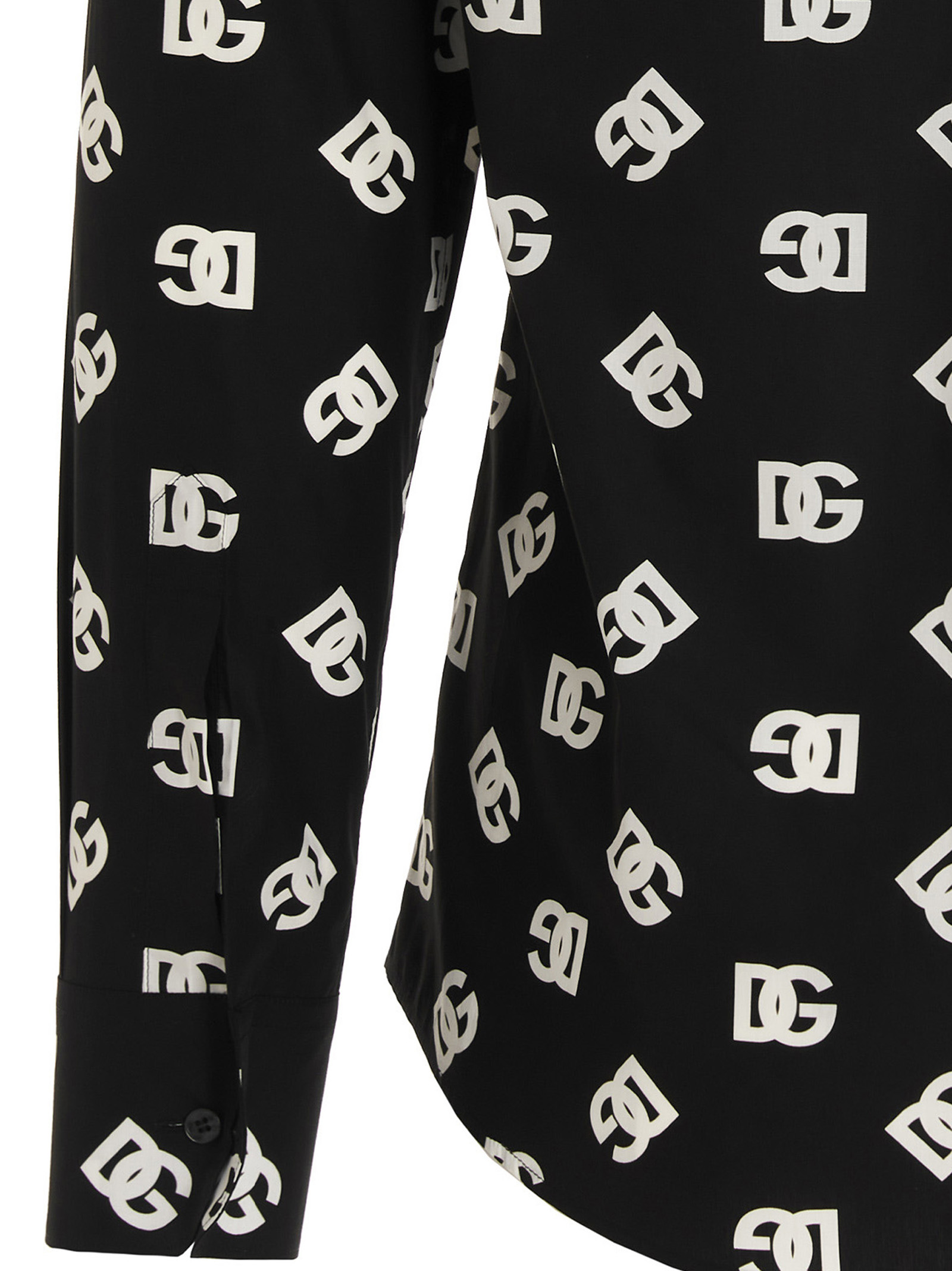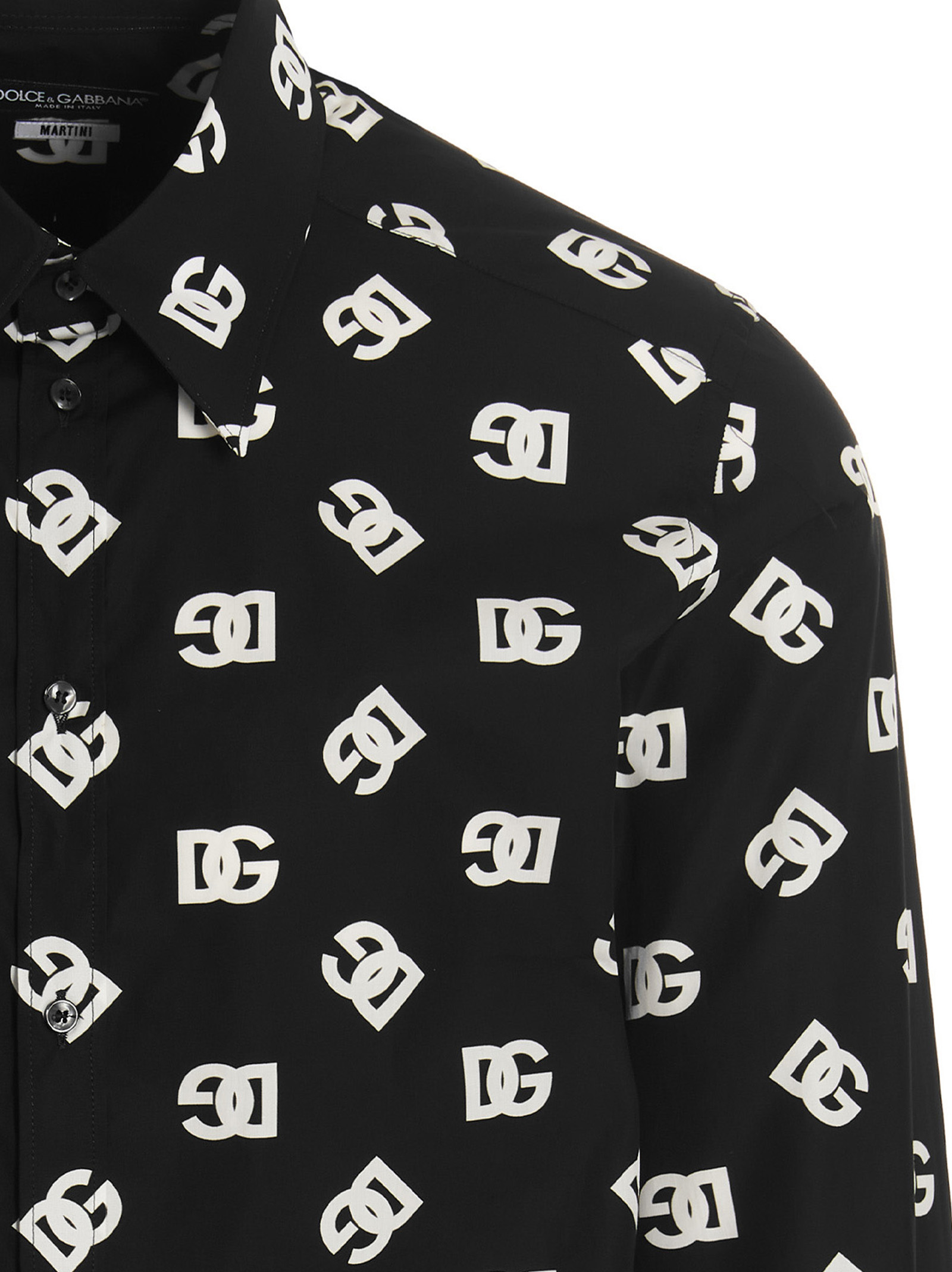 Black Sicily’ cotton shirt with all over logo print, button closure, and long cuffed sleeves.