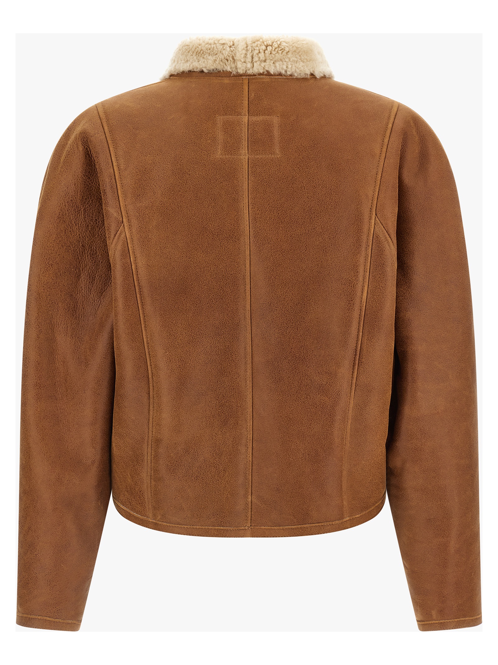 ‘Blondine’ jacket in used-effect lambskin leather with shearling lining, crop style, asymmetric zip closure, high neck, pockets, long sleeves.
