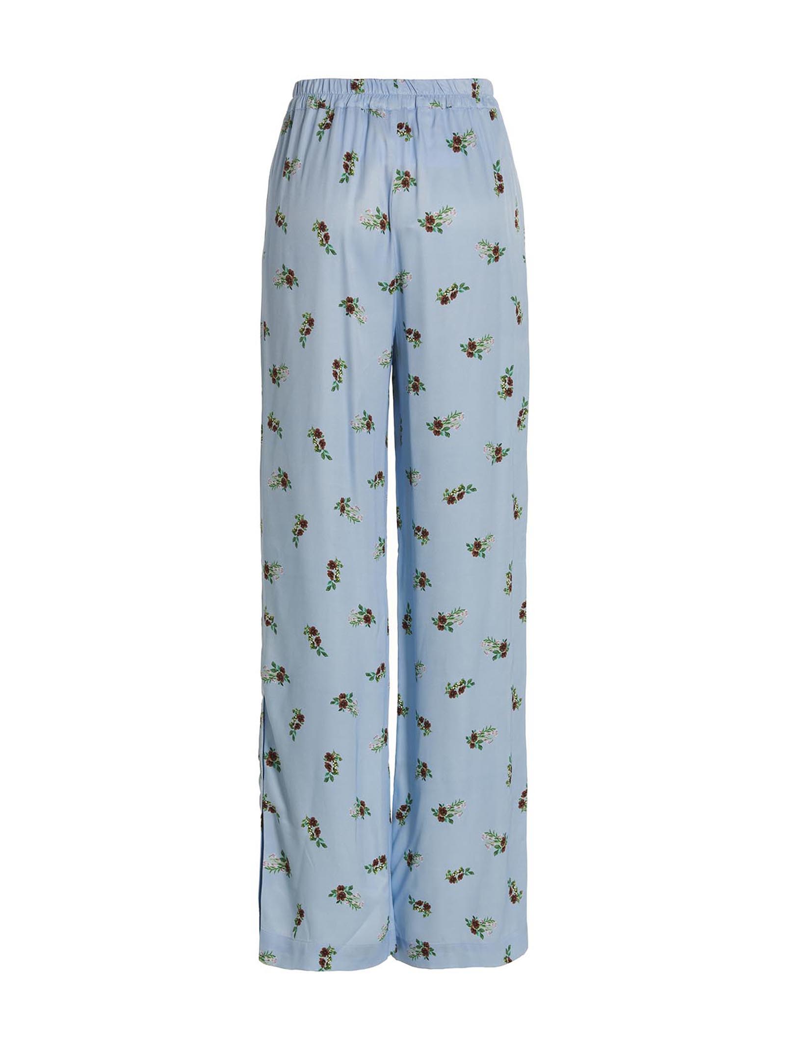 ‘Blossom’ viscose pants with all-over print, elastic waistband, wide leg and slits at the hem.om hem.