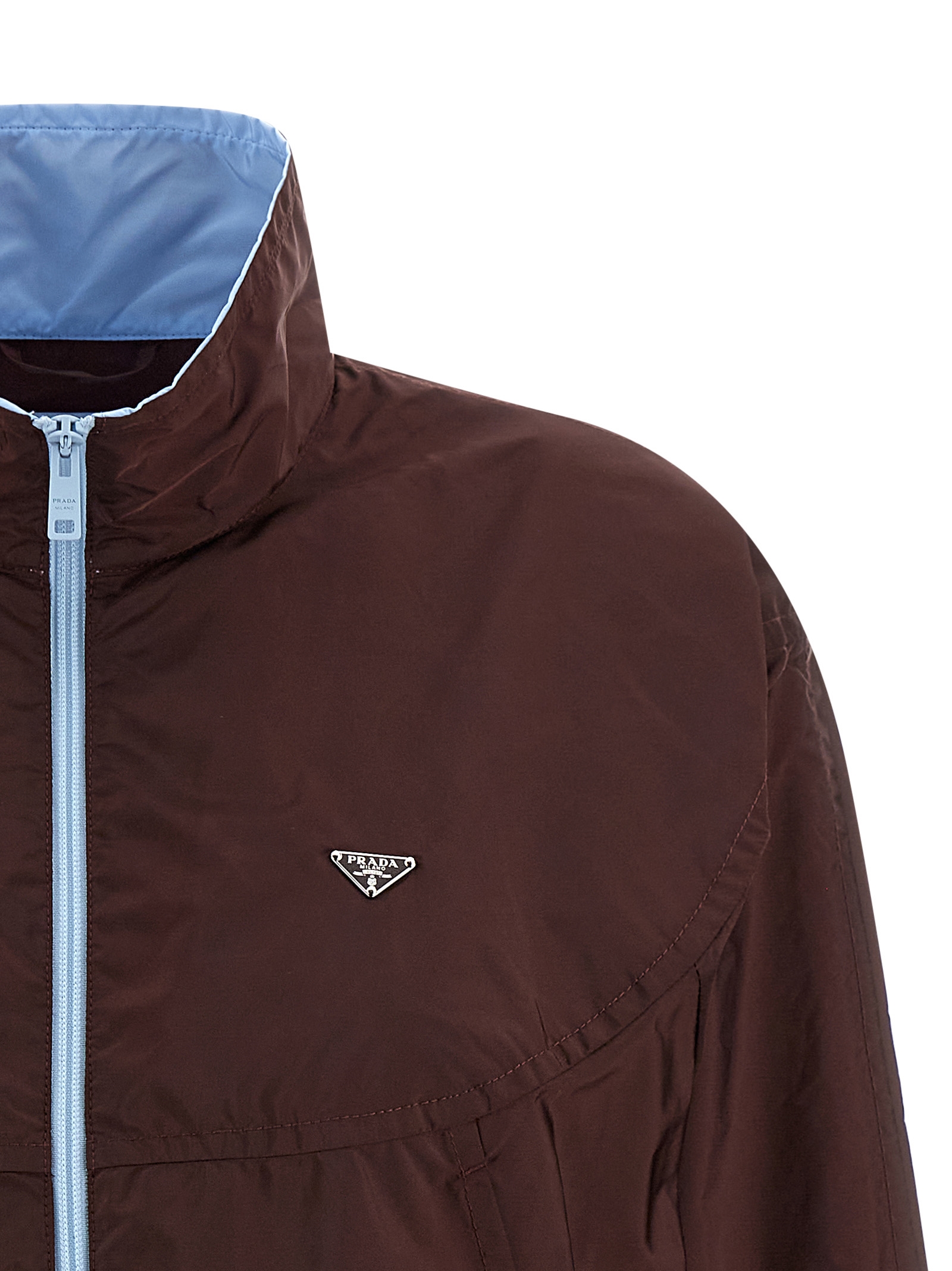 Re-Nylon blouson with triangle logo in enamelled metal and front zip closure, high neck with contrasting interior, pockets, drawstring at the waist, long sleeves with elastic cuffs, unlined.