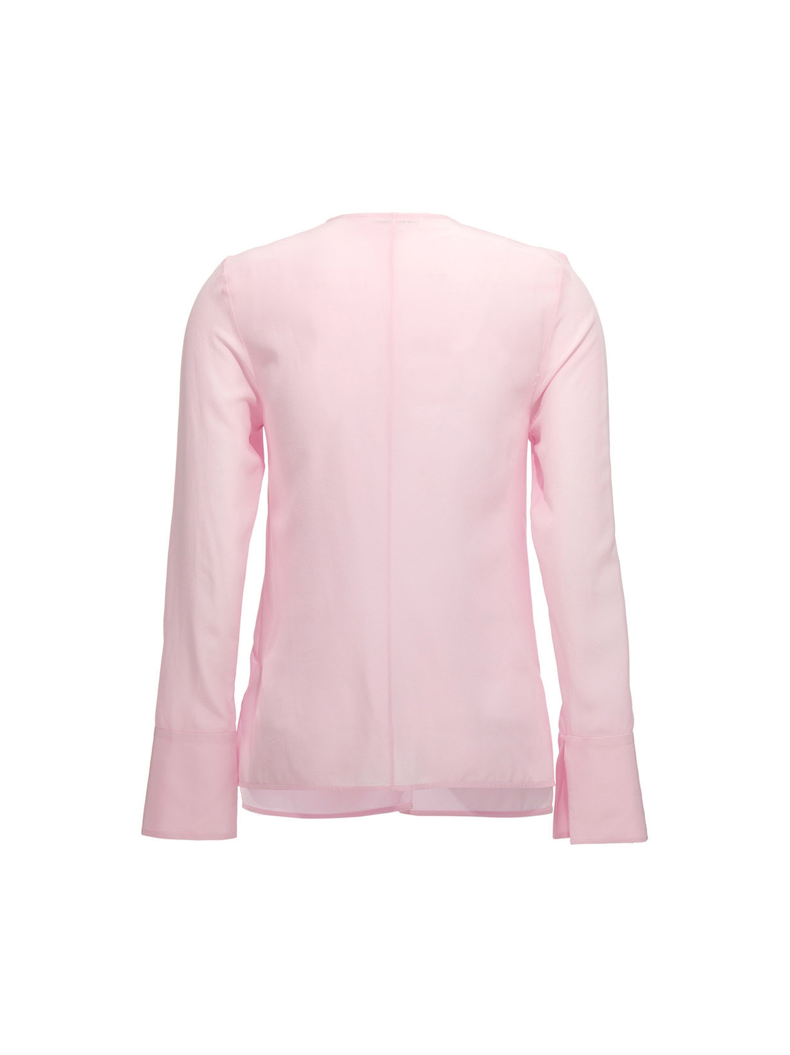 Blusa con ruffles asimmetrico sullo scollo, dettaglio cut out e mini fiocco al collo.