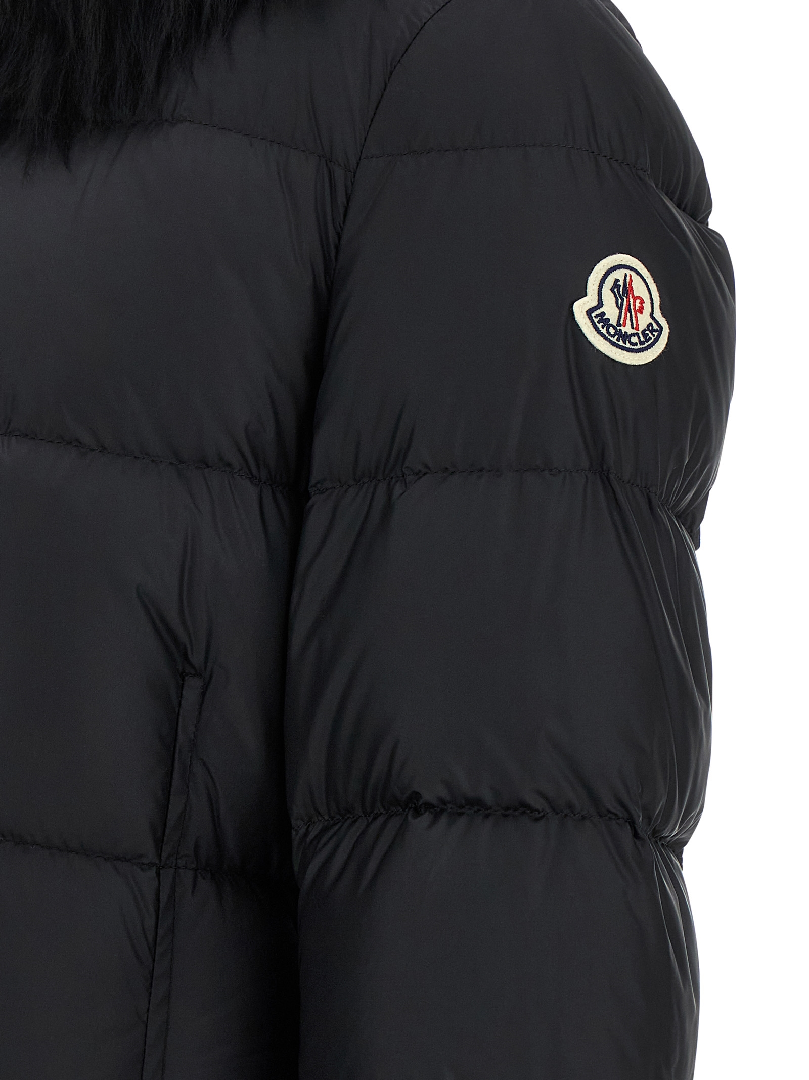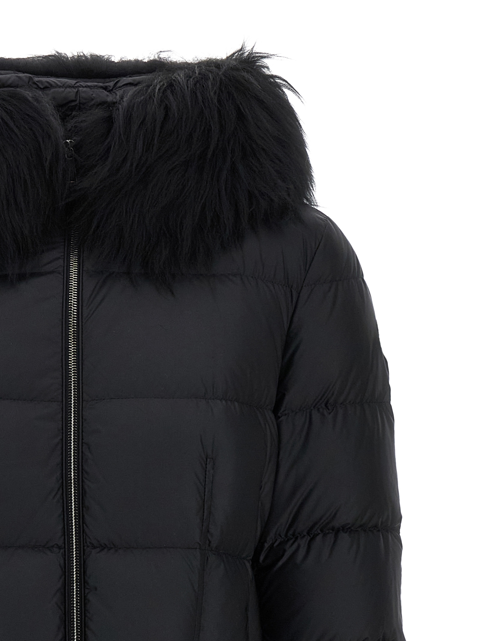 ‘Boedic’ padded and quilted nylon jacket, high neck, hood with removable fur, elastic waistband, zip closure, long sleeves with elastic.
