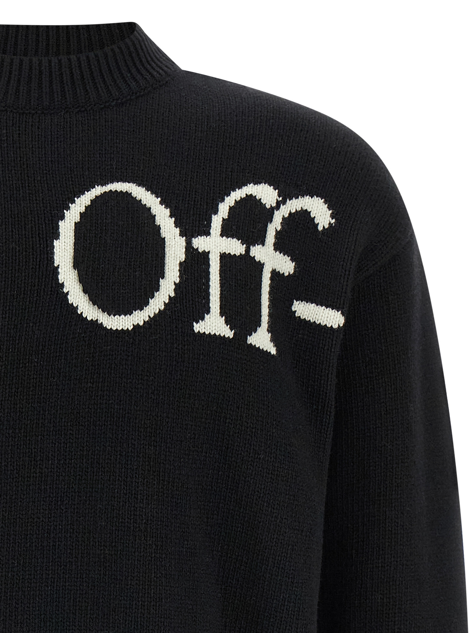 Bookish Shared Knit’ virgin wool sweater with front and back logo intarsia, crew neck, long cuffed sleeves and dropped shoulders.