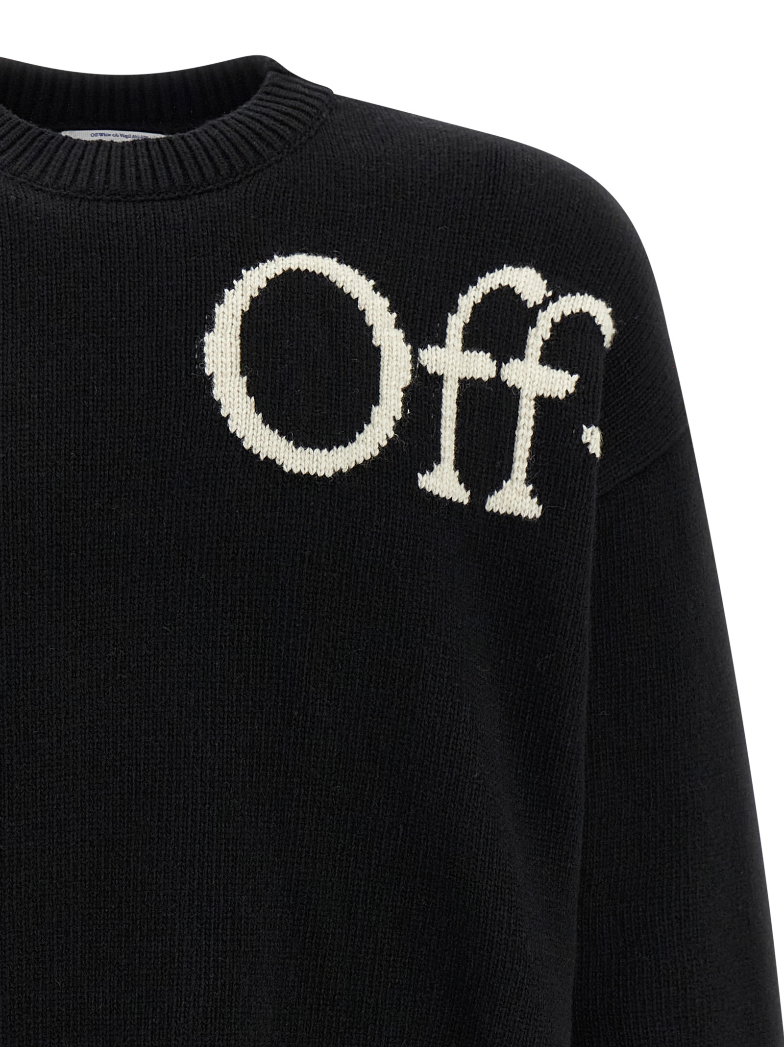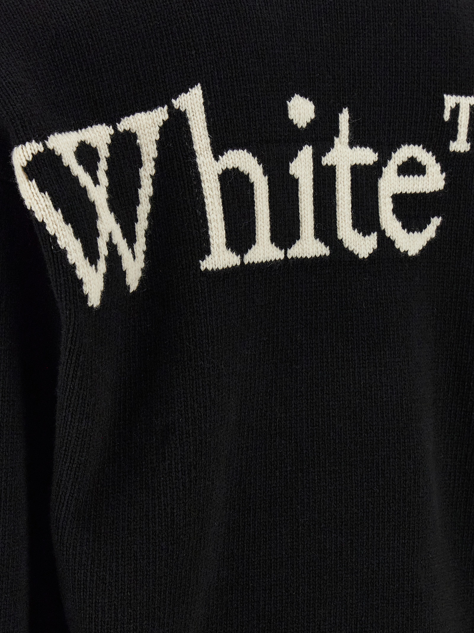 Bookish’ wool blend sweater with contrast logo intarsia on the front and back, crew neck, long cuffed sleeves and dropped shoulders.