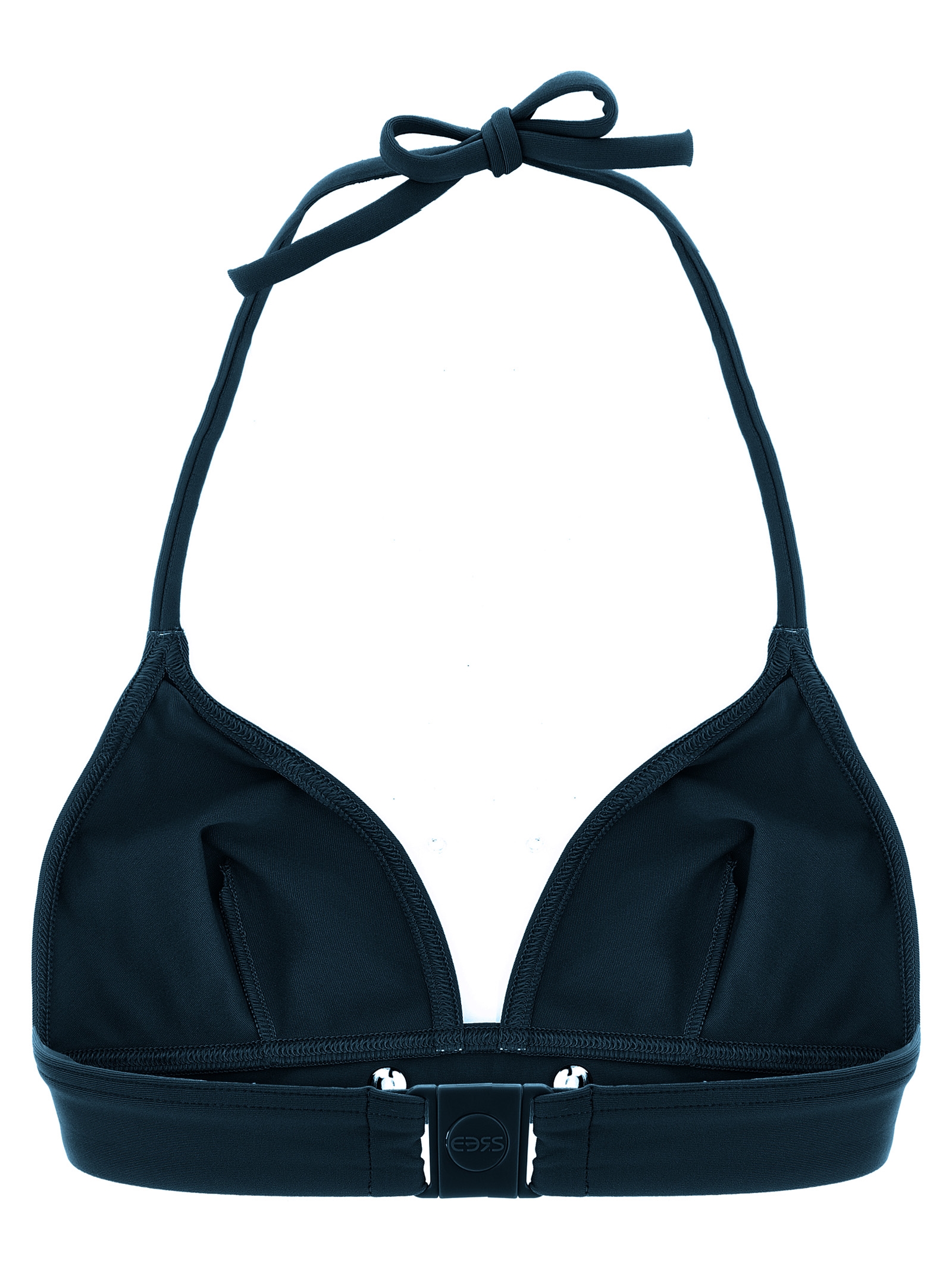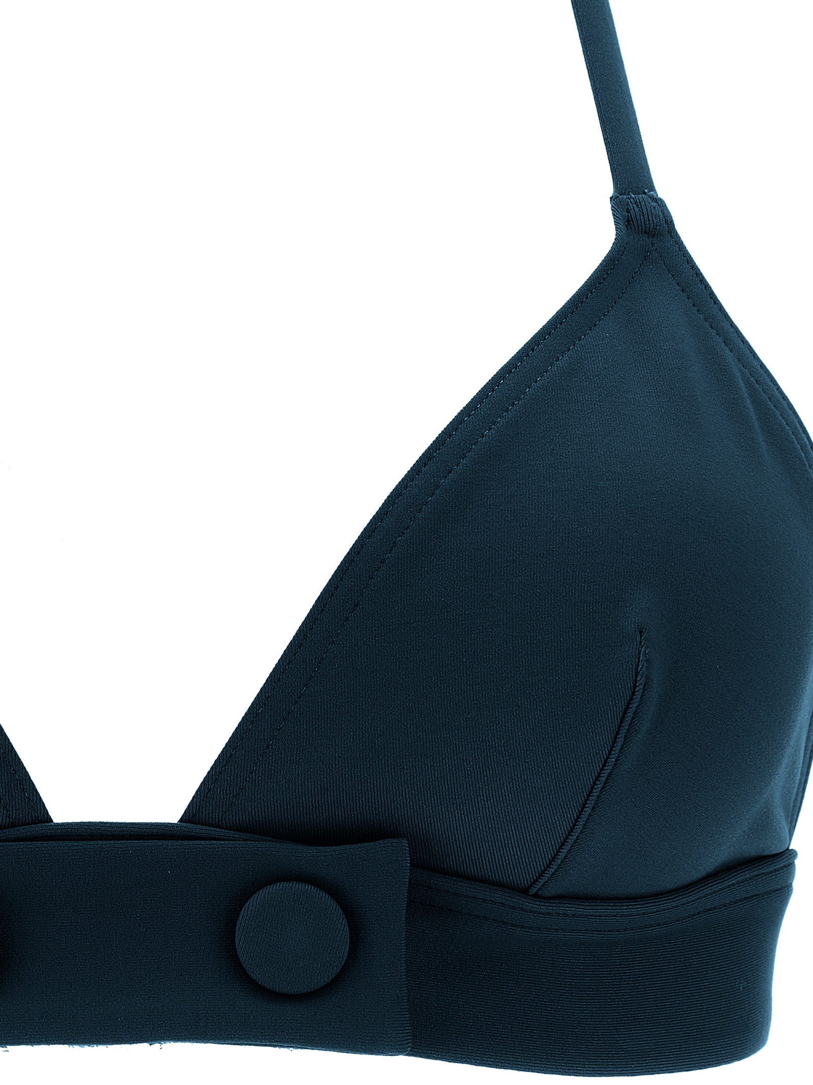 Bord’ triangle bikini top in Peau Douce* fabric with front trompe l’oeil snap buttons, adjustable neck strap and back hook.