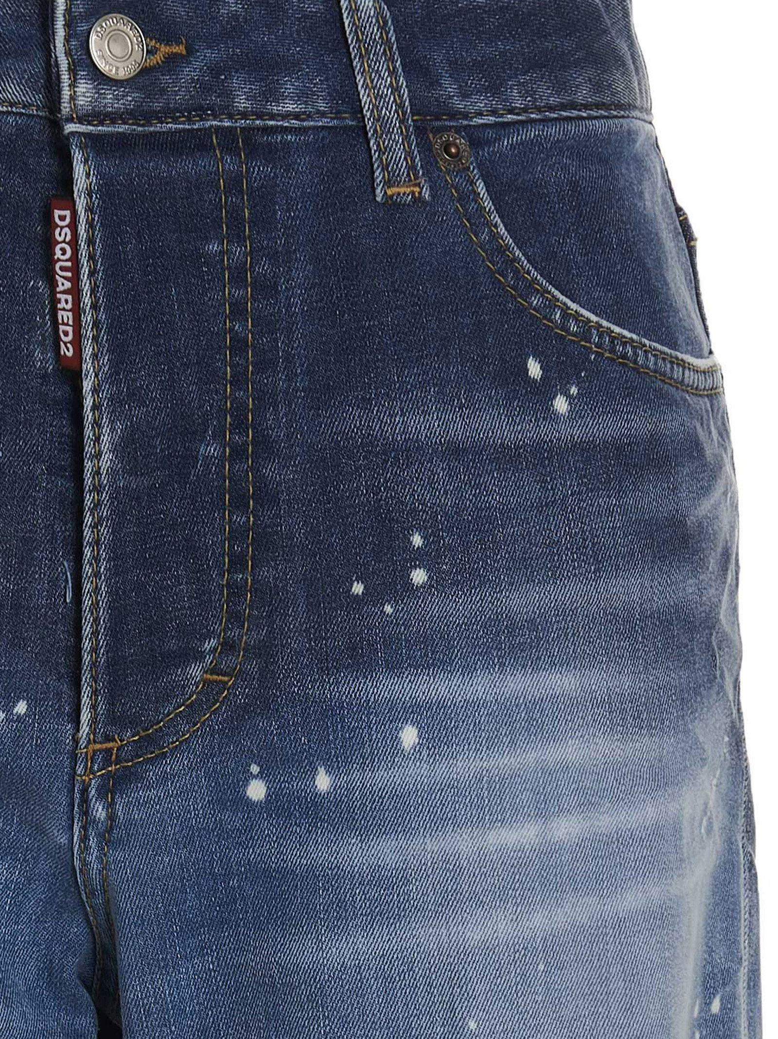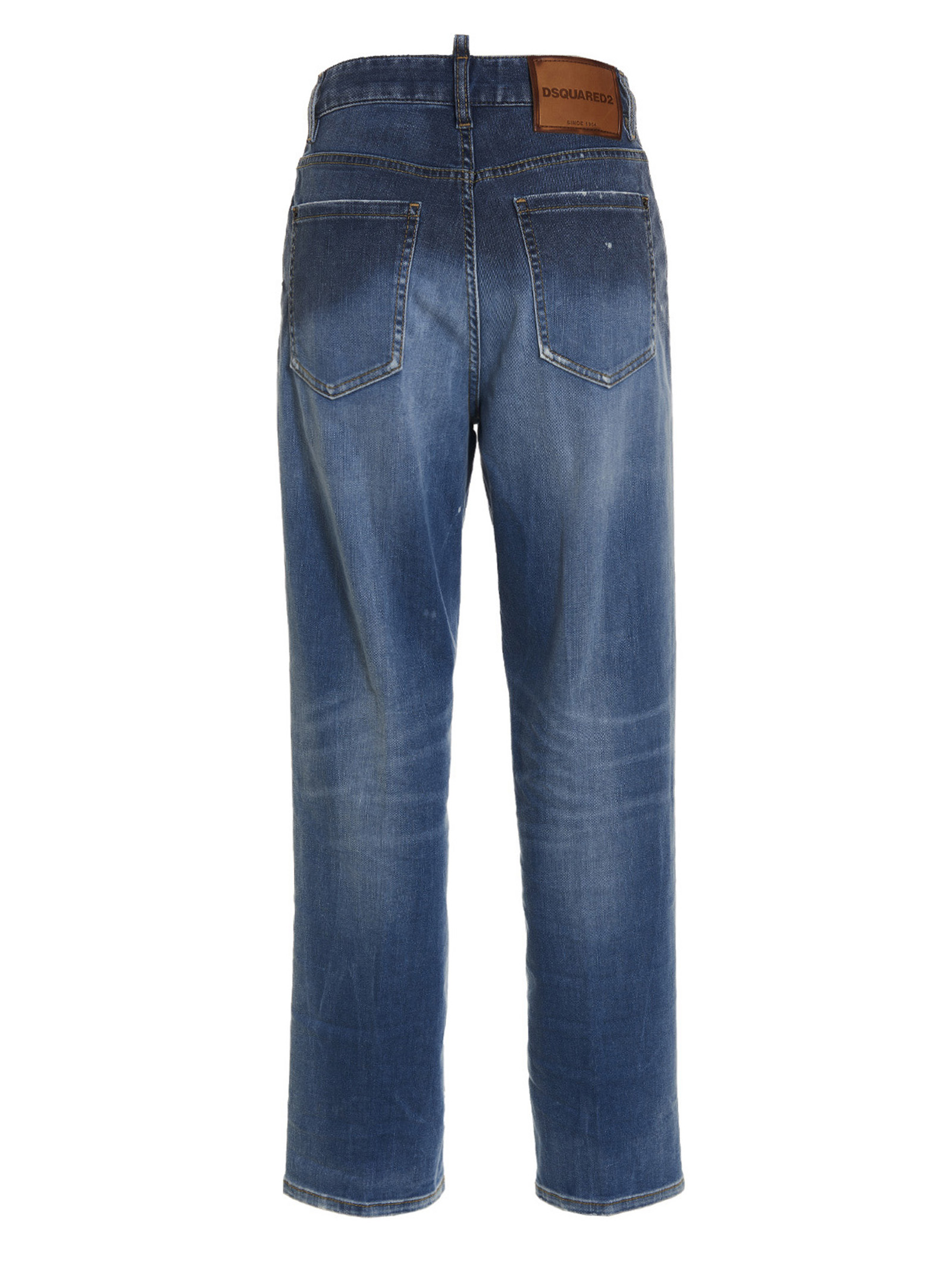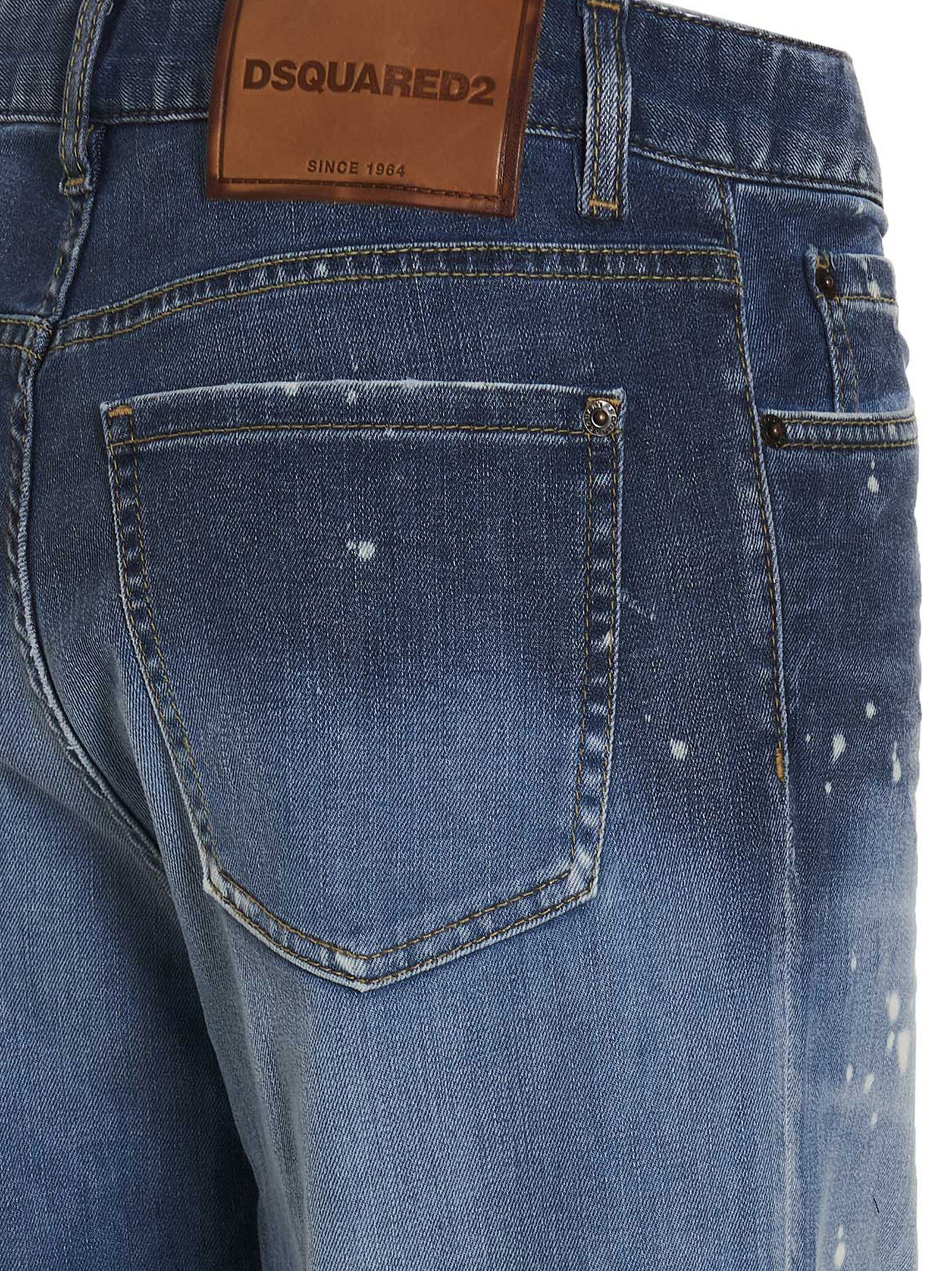 Boston’ stretch cotton denim jeans with button closure, five pockets, leather logo tag, used-effect details and bleached spots.