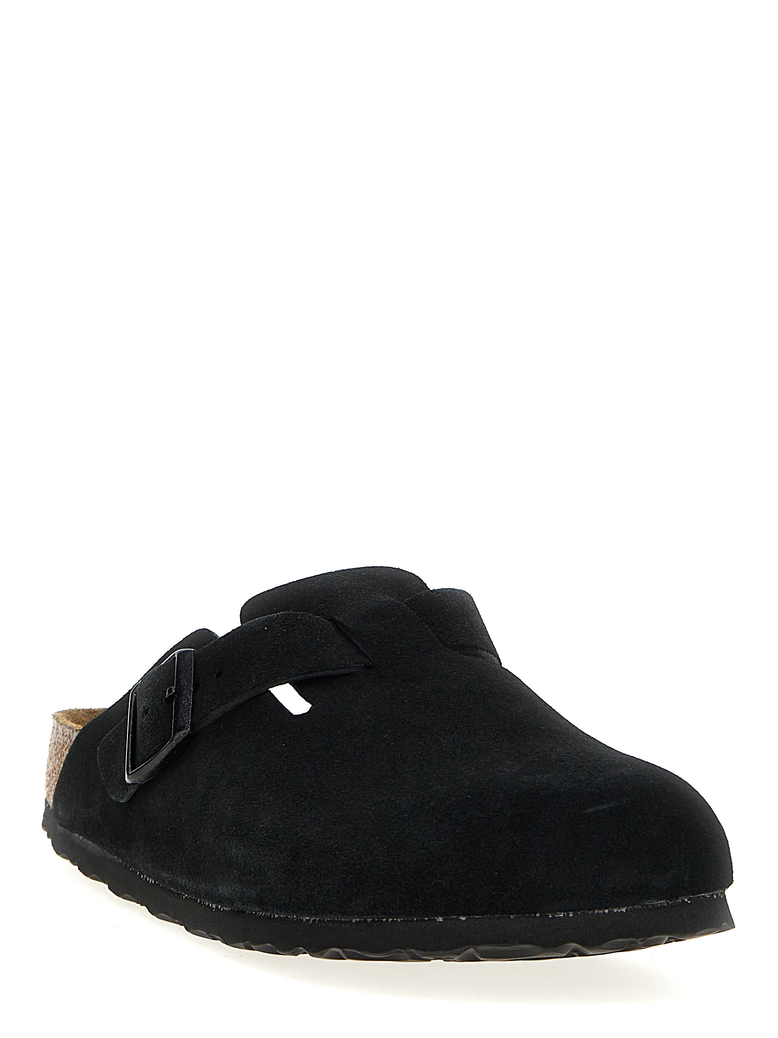 ‘Boston’ suede sabots, cork insole, rubber sole.