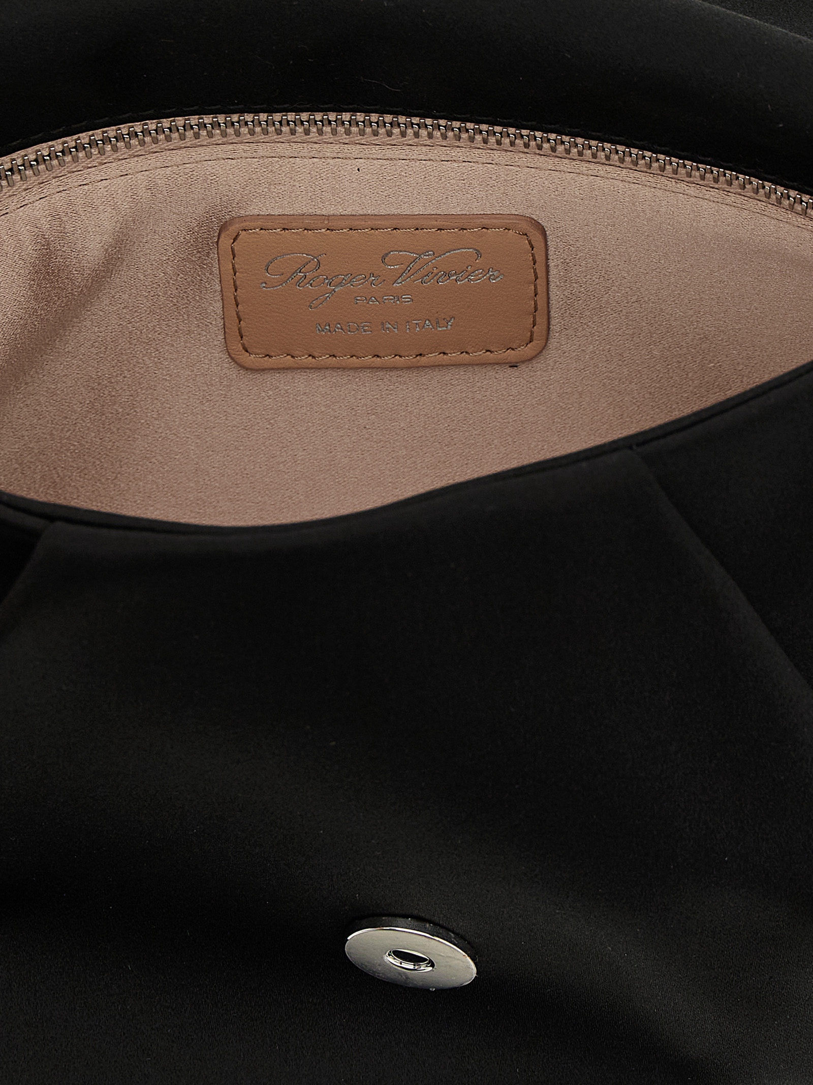 ‘Bouquet Strass Drape mini’ draped satin clutch, flap with magnetic closure and jewel of rhinestones on the front, removable chain shoulder strap