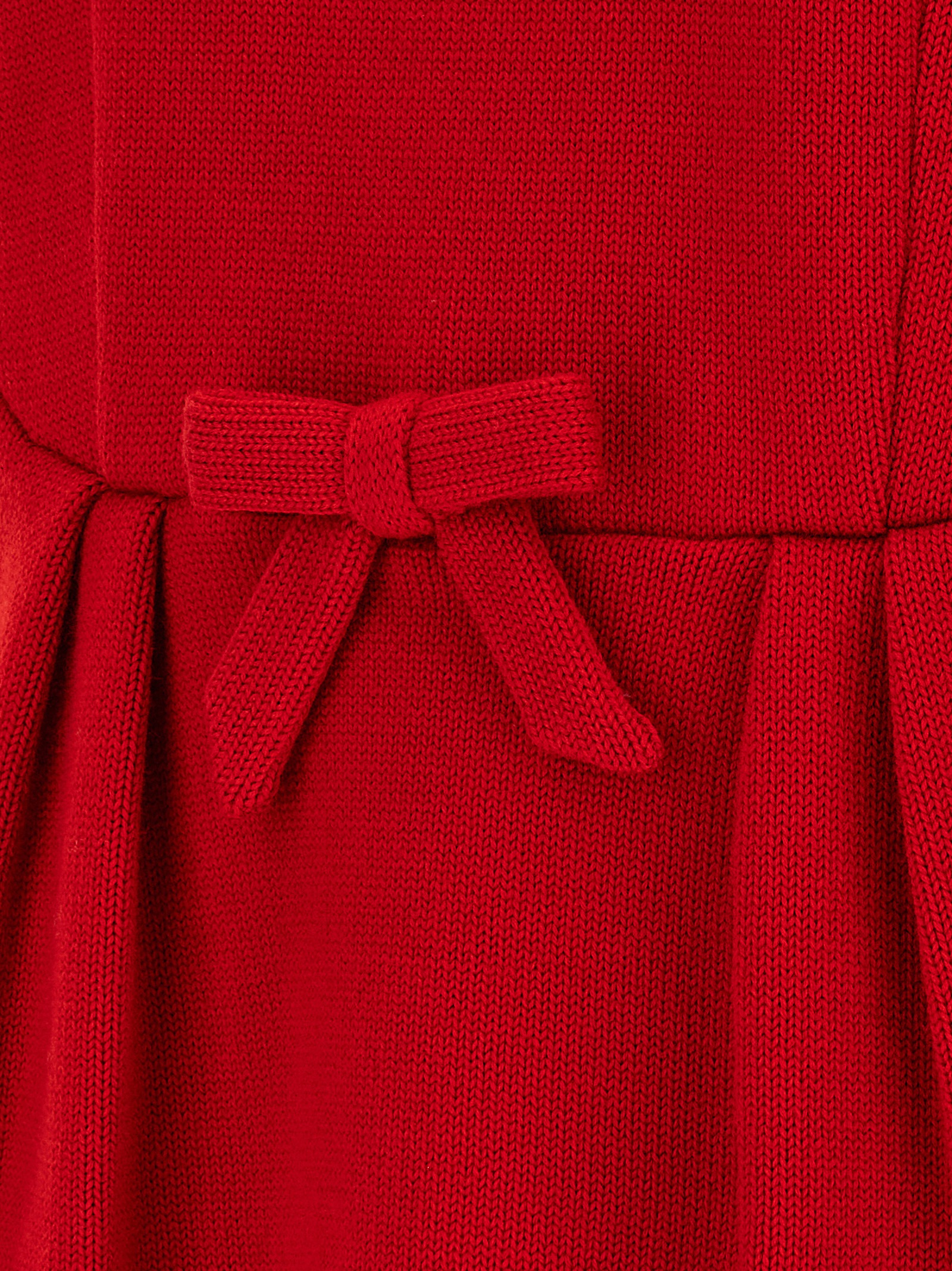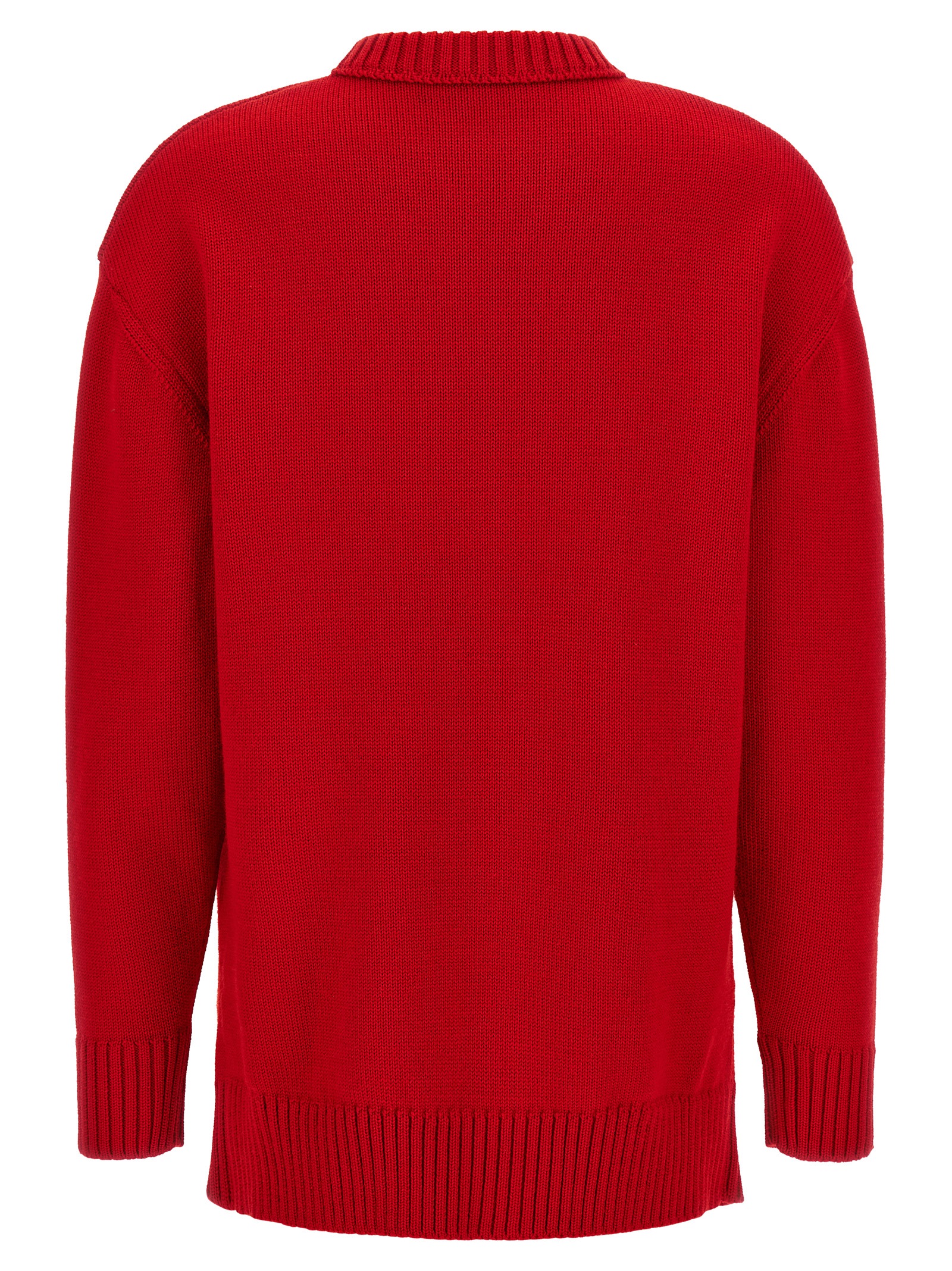 Virgin wool sweater with front bow details and pleats, crew neck, long cuffed sleeves and dropped shoulders.