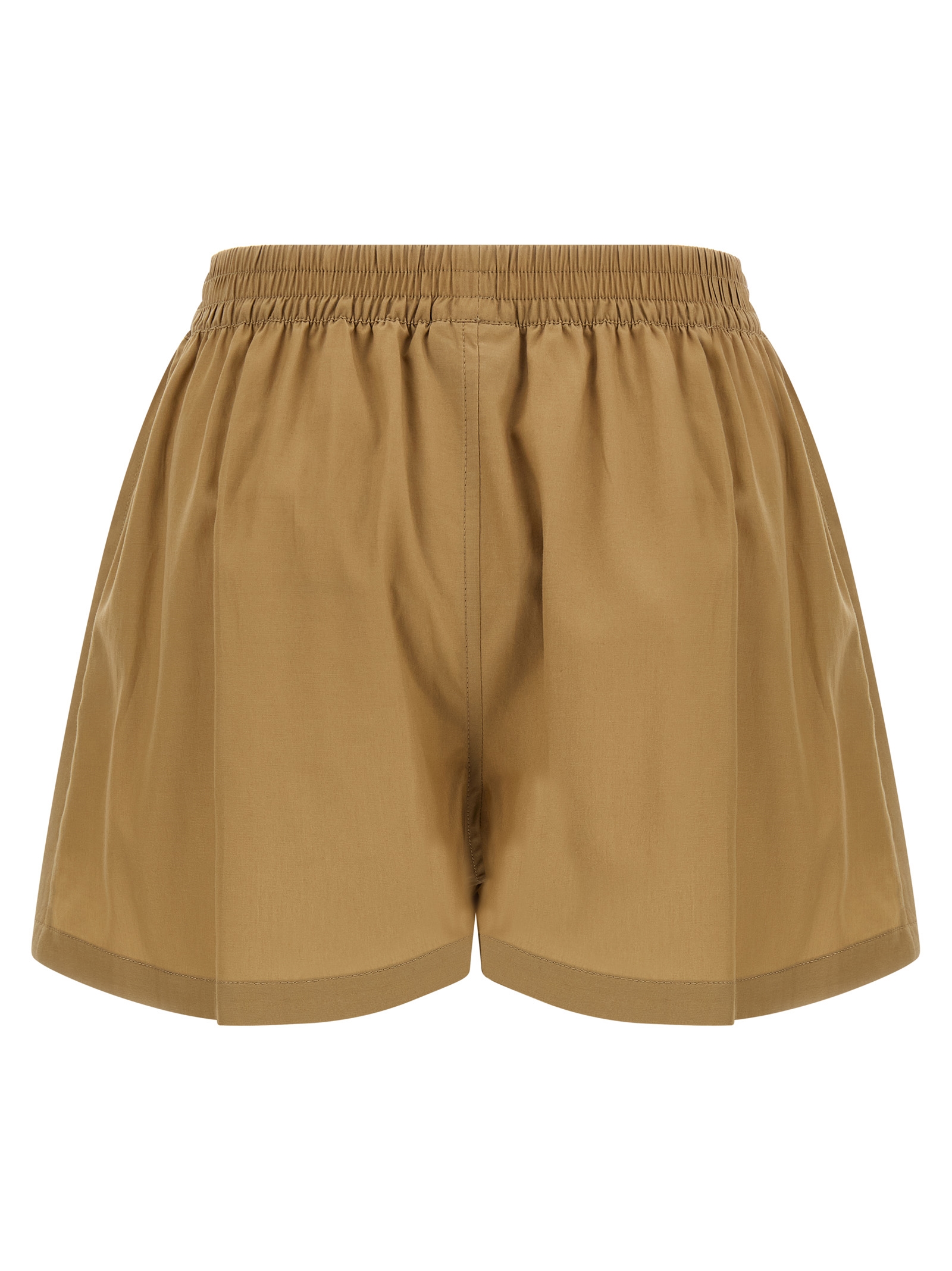 ‘Boxer A-Line’ shorts in fluid cellulose poplin, boxer-inspired model, A-line silhouette, mid waist, pins, wide leg, elastic with logo patch at the waist, pockets.