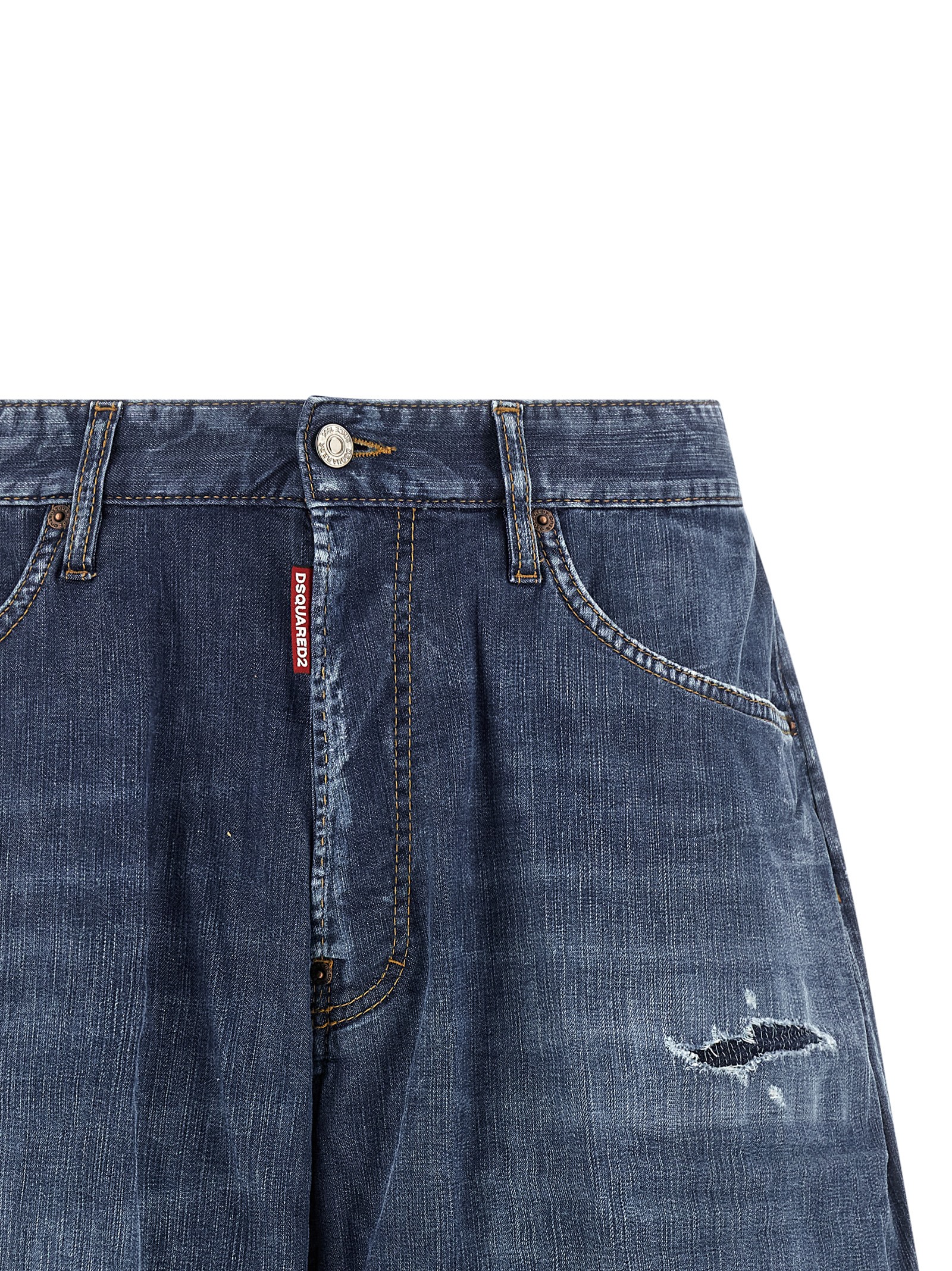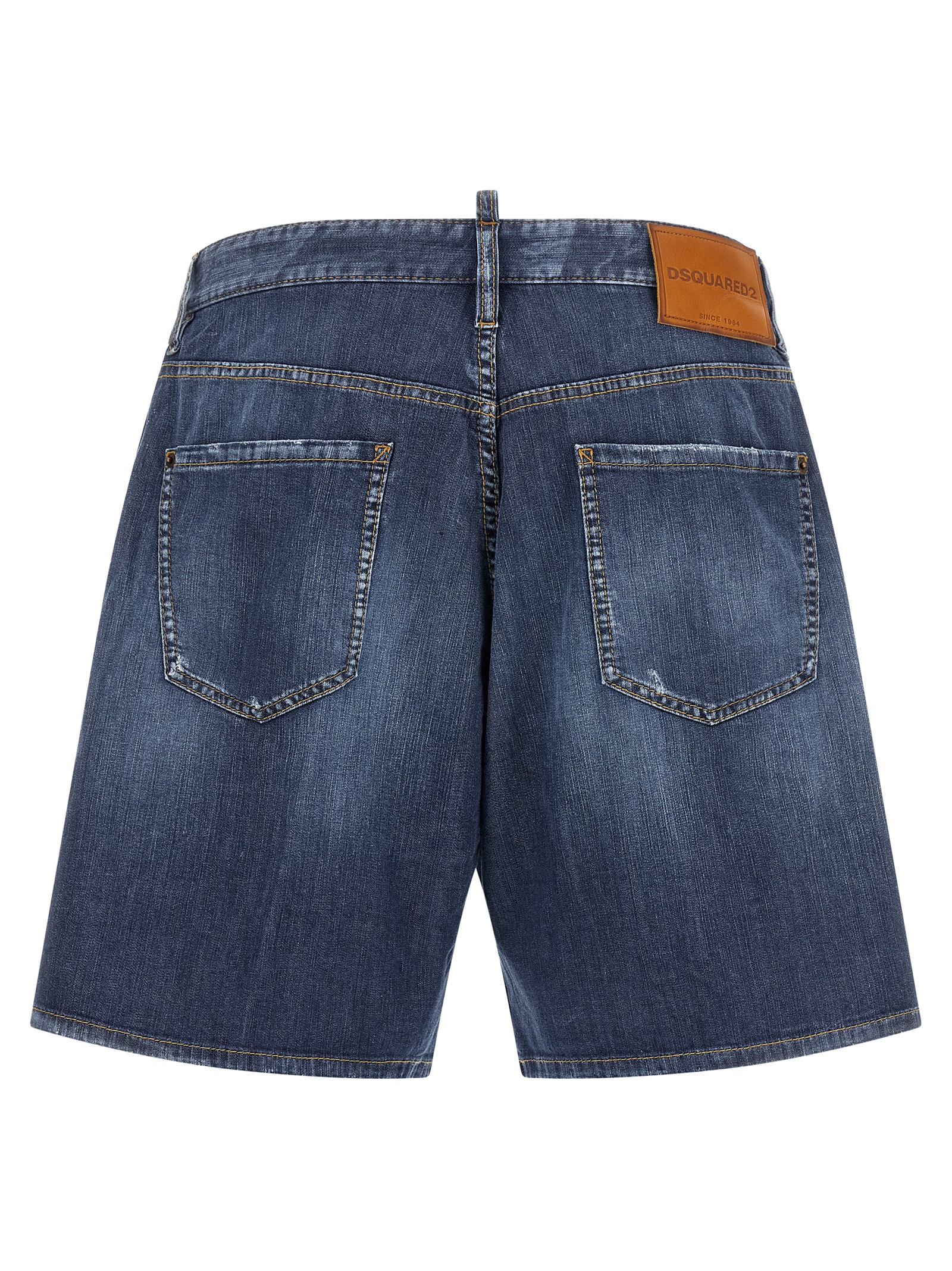 Boxer’ bermuda shorts in used-effect stone-washed cotton denim with distressed details, contrast stitching, front button closure, five pockets, leather logo tag with embossed logo on the back.
