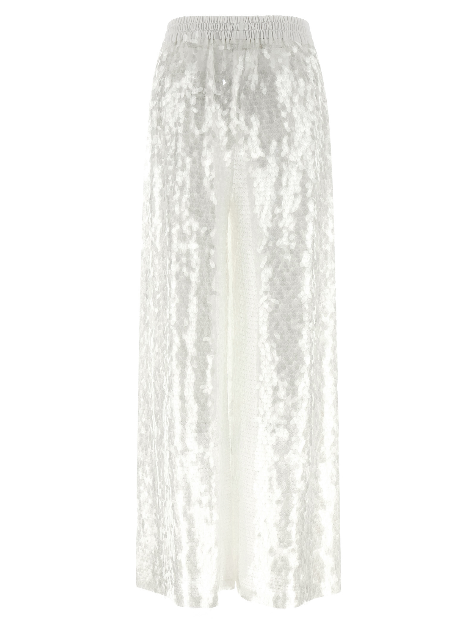 ‘Boyfriend Elephant’ trousers in shiny fabric with all-over maxi-sequins, medium waist model, wide with straight leg, elastic waistband.