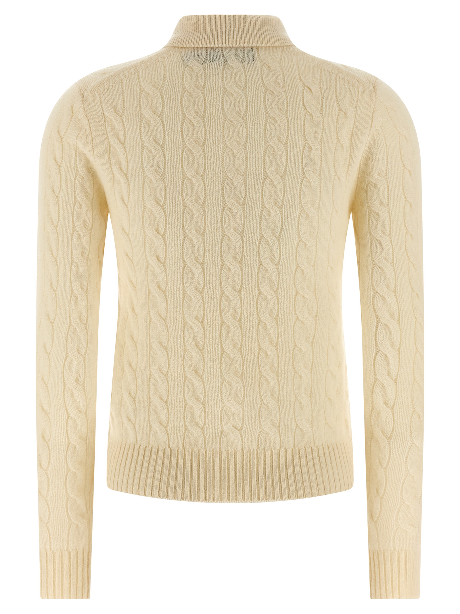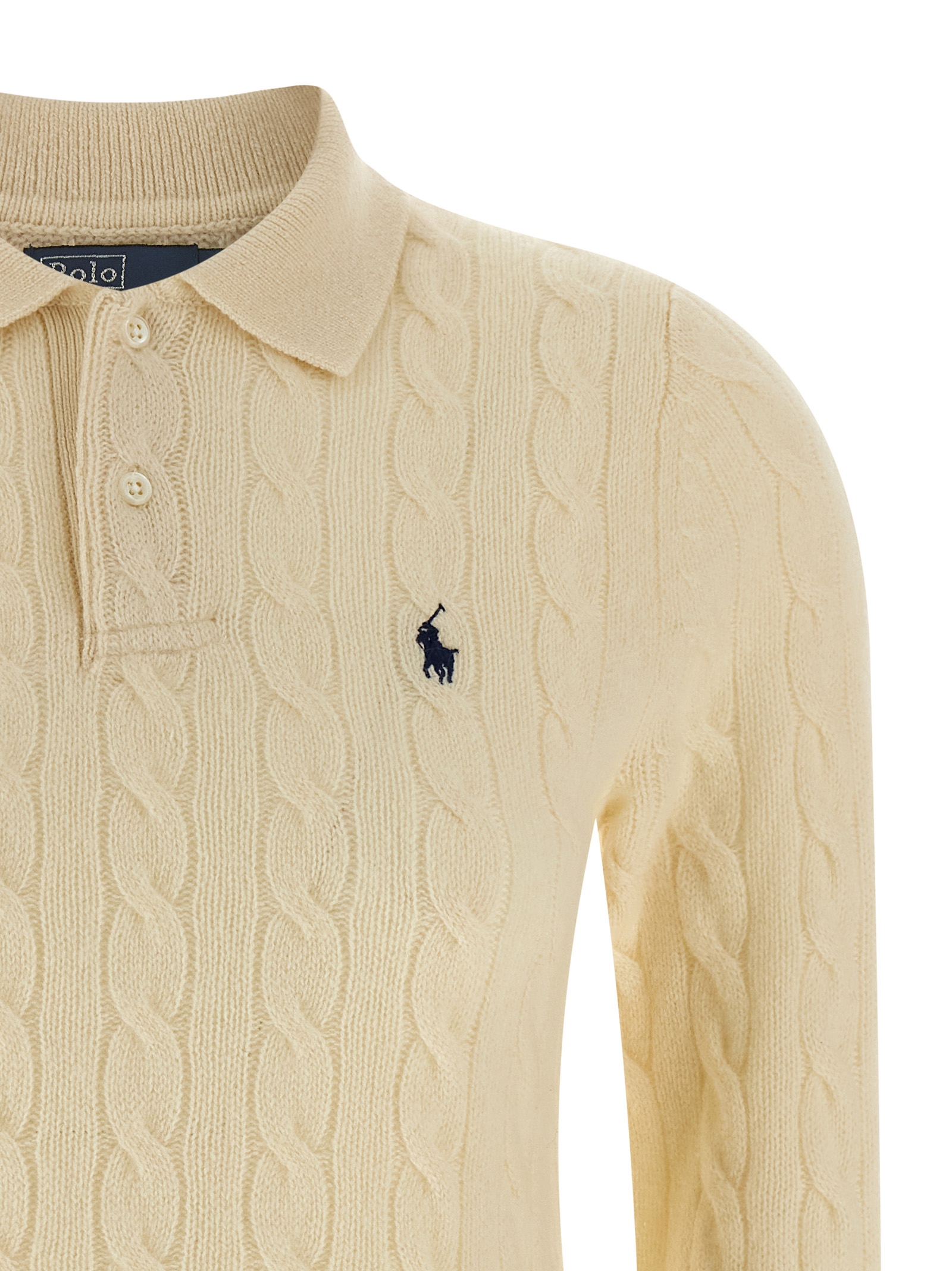 Braid wool and cashmere blend polo shirt, front logo embroidery, collar and buttons, long cuffed sleeves.
