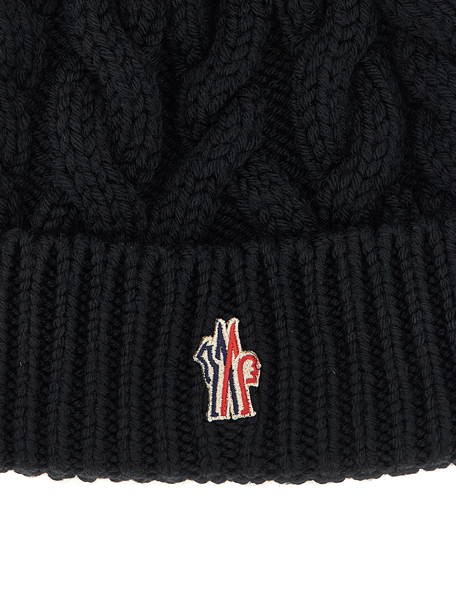 Virgin wool beanie with maxi braids, ribbed turn-up with front logo patch.