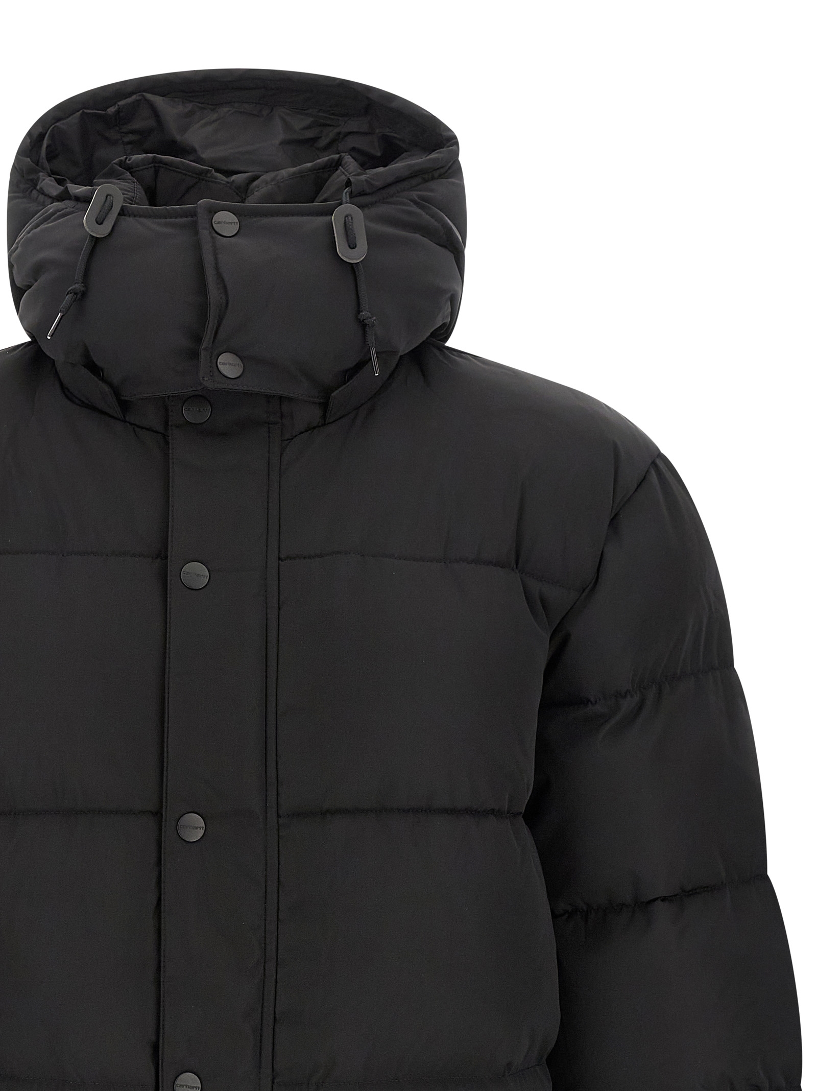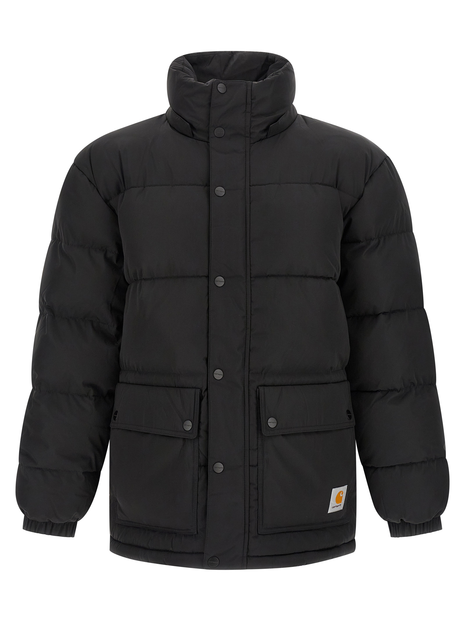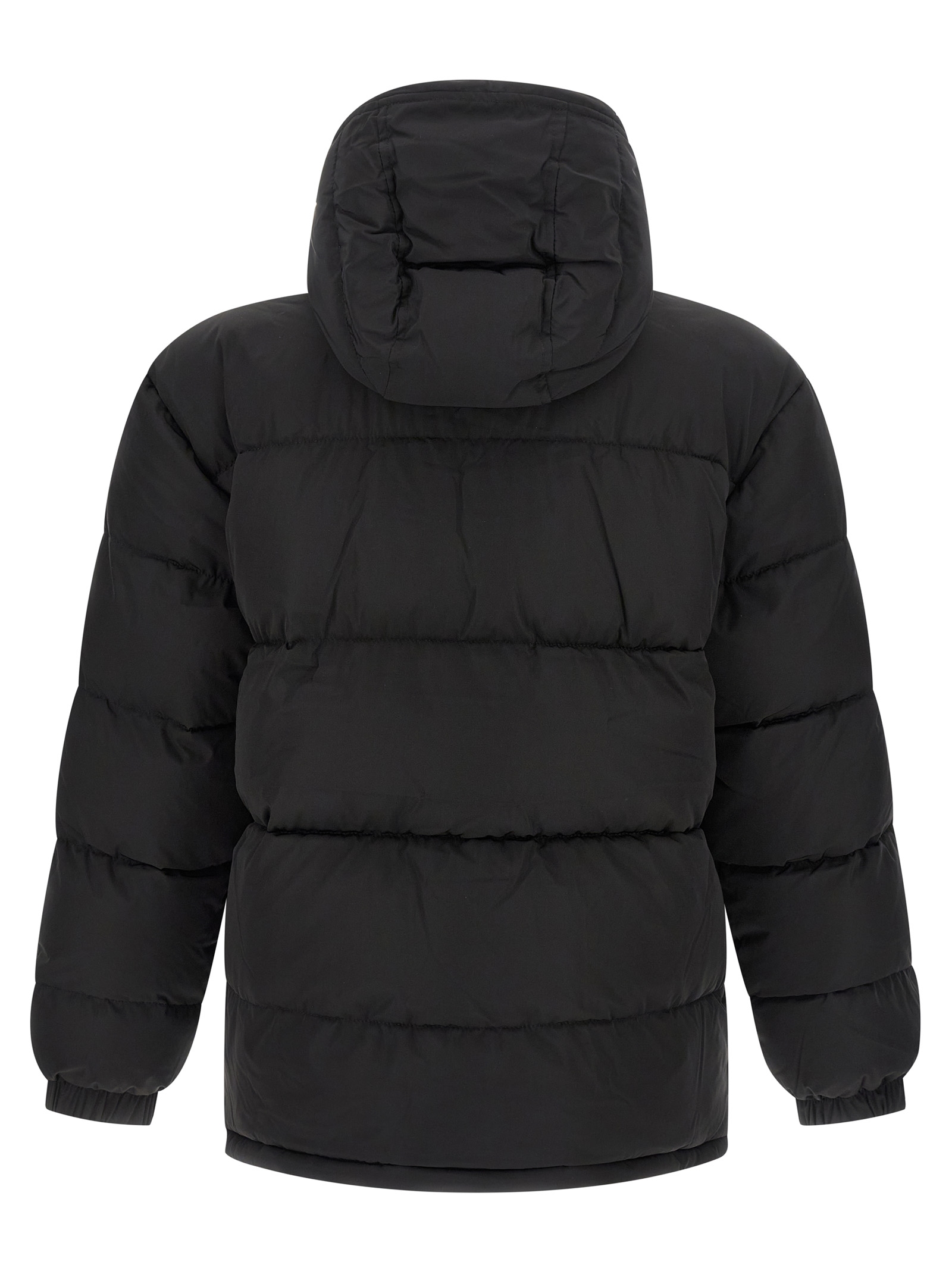 ‘Brent Jacket’ padded and quilted nylon down jacket, removable hood, front pockets with logo patch, front zip closure, long sleeves with elastic cuffs.