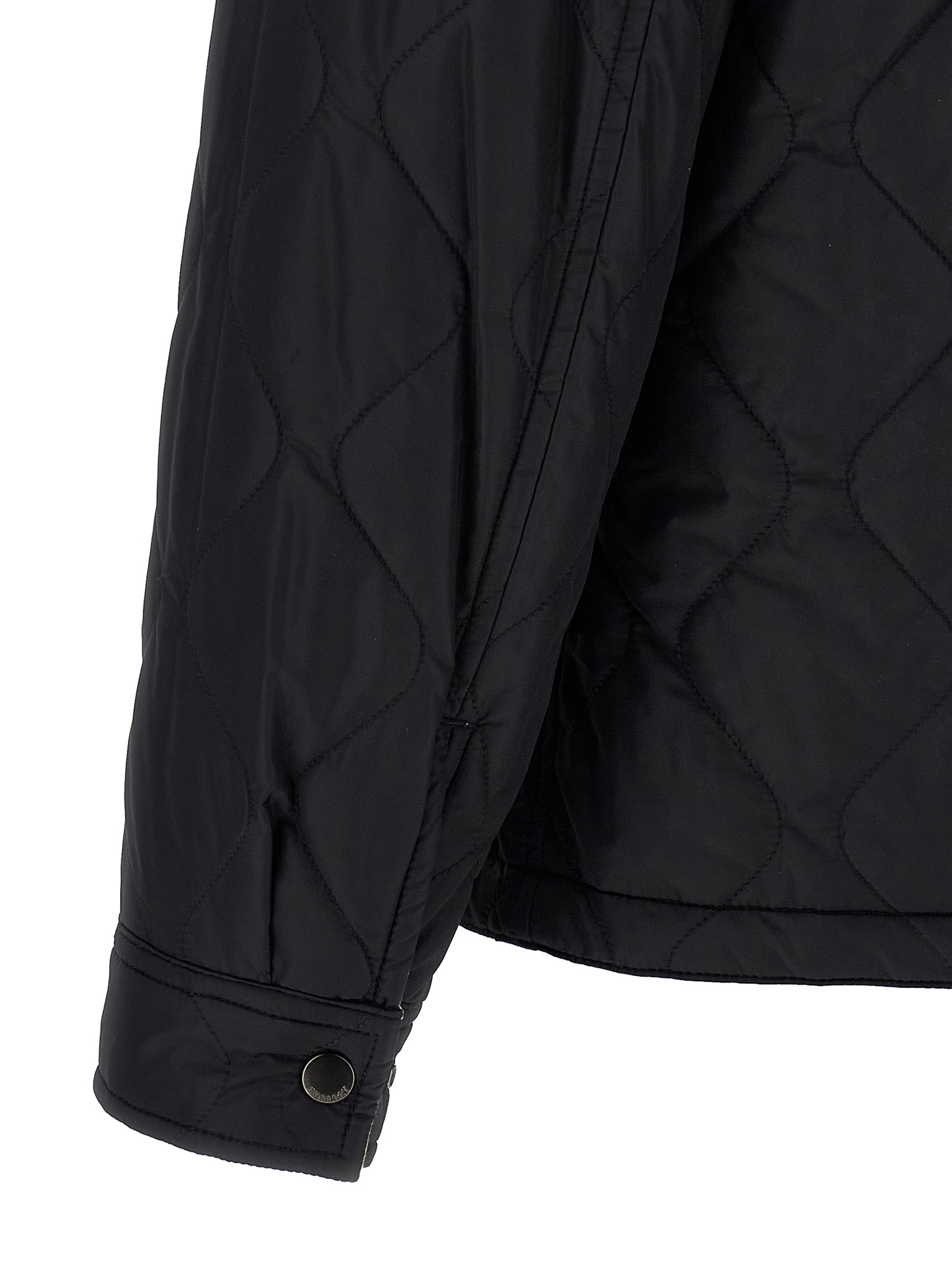 ‘Brighton’ reversible overshirt in solid color nylon and Burberry Check cotton twill, shirt collar, front snap button closure, pockets, long cuffed sleeves.