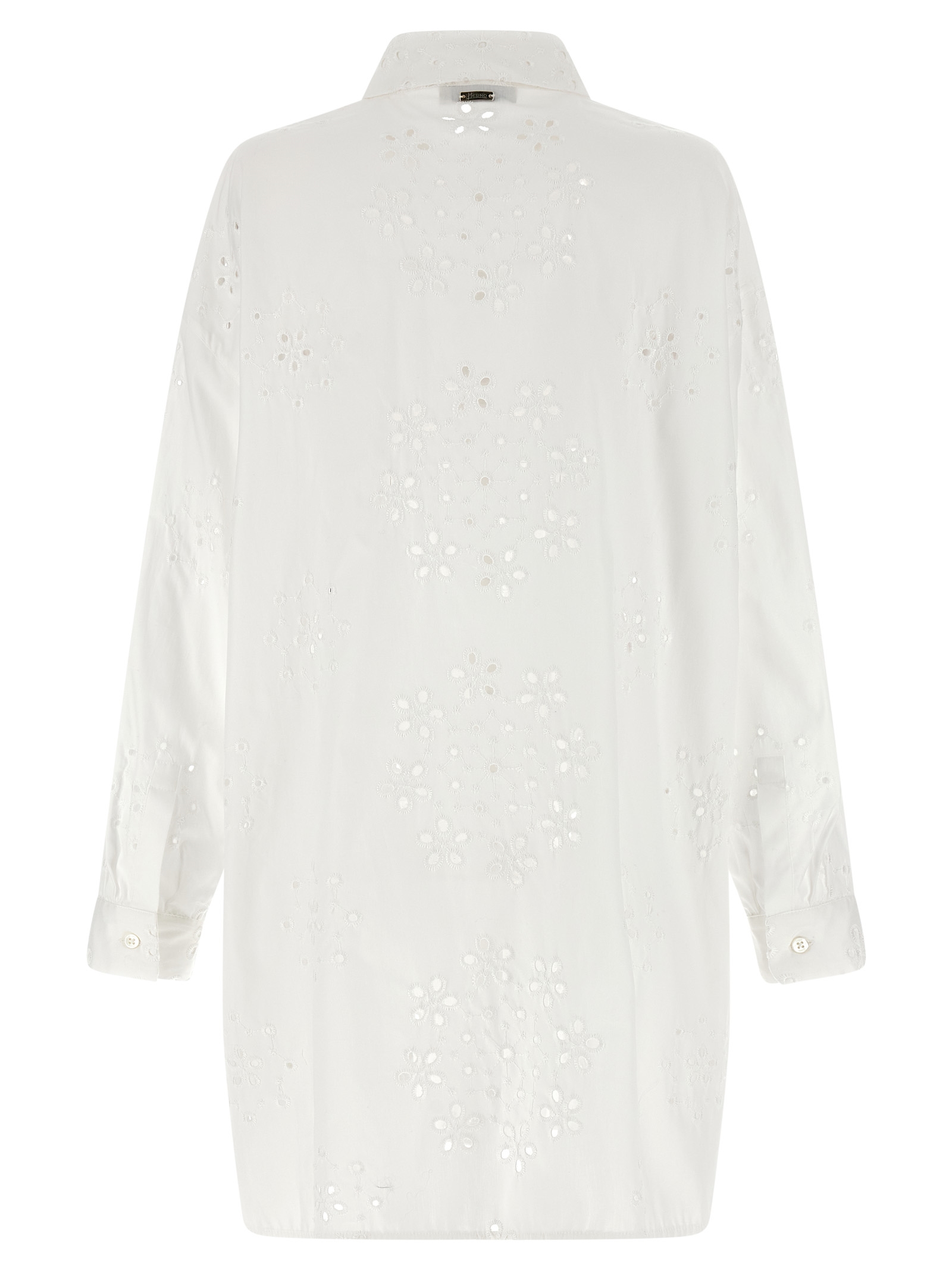 ‘Broderie Anglaise’ sangallo cotton shirt with embossed embroidery and perforated patterns, French collar, front mother-of-pearl button closure, long cuffed sleeves.