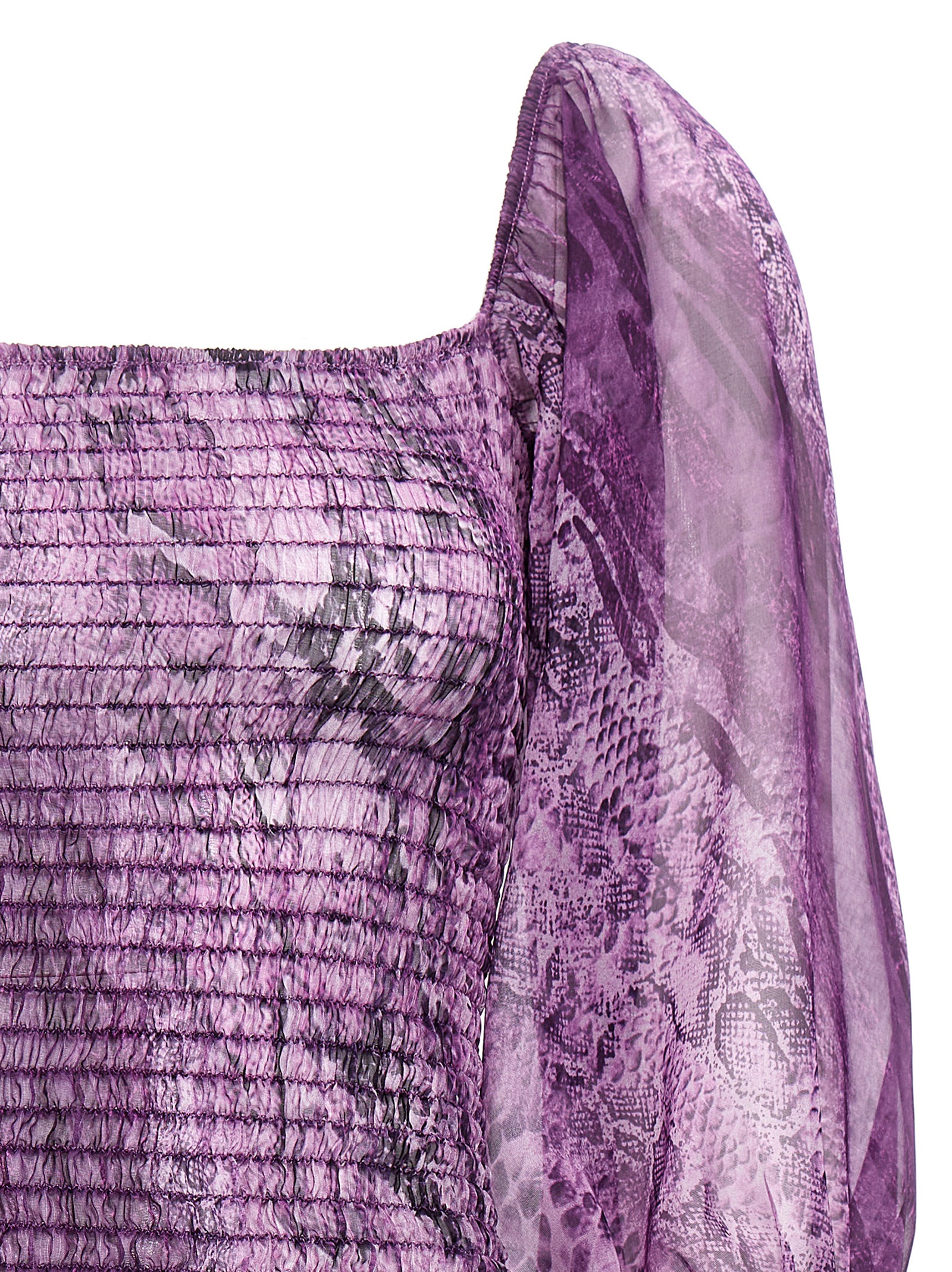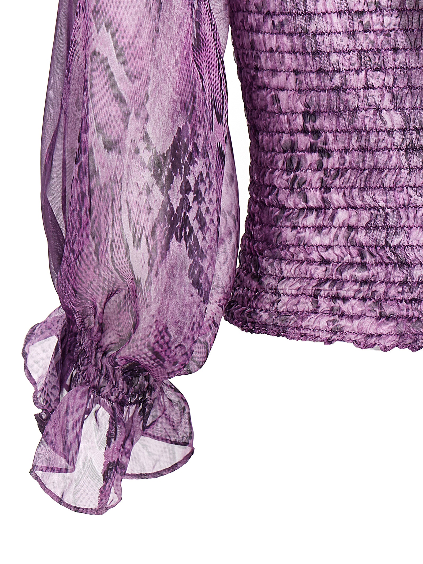 C/Prazac’ smock stitch fabric blous with floral print, off-the-shoulder style with long sleeves, elastic cuffs and flounces.