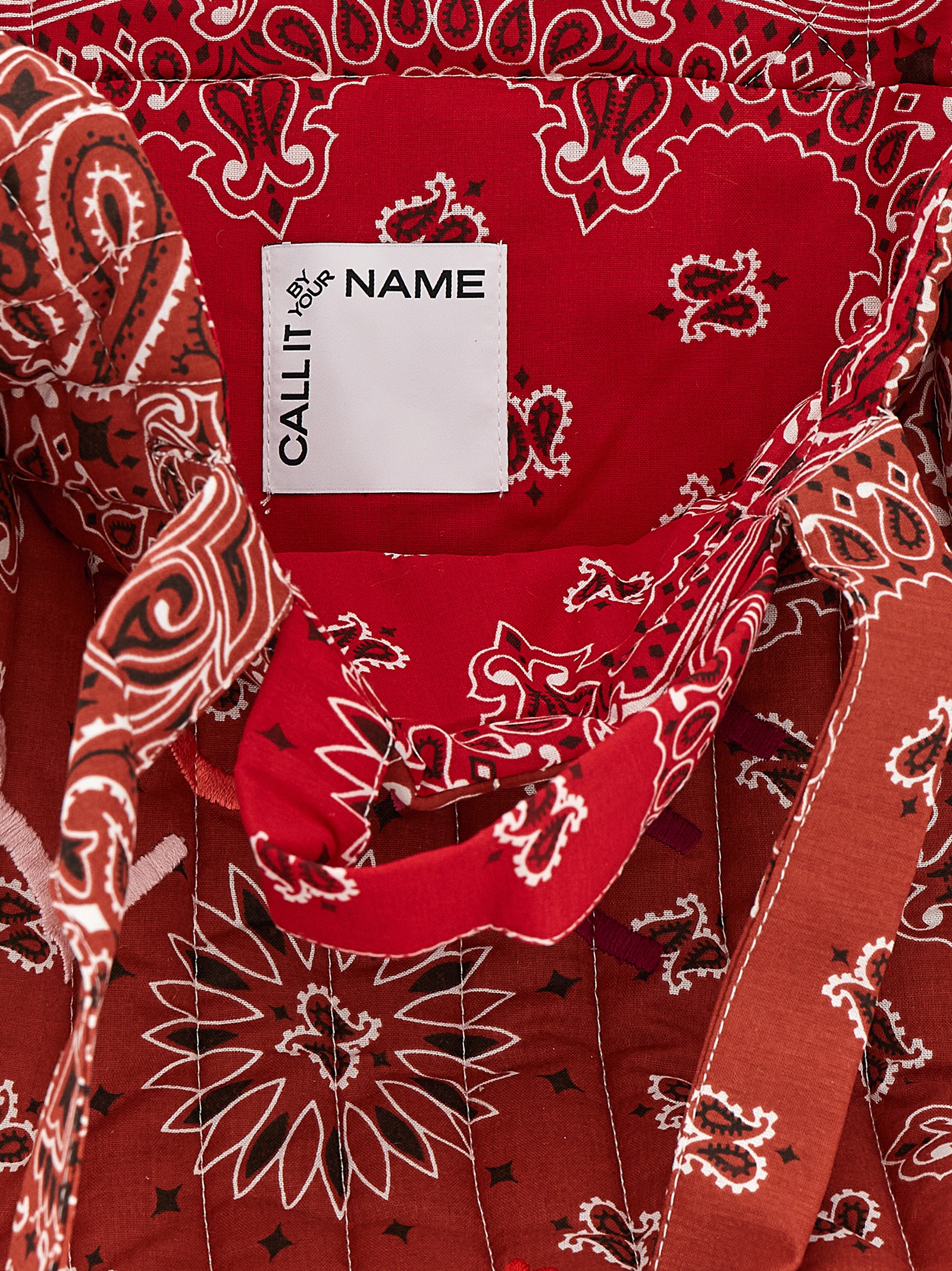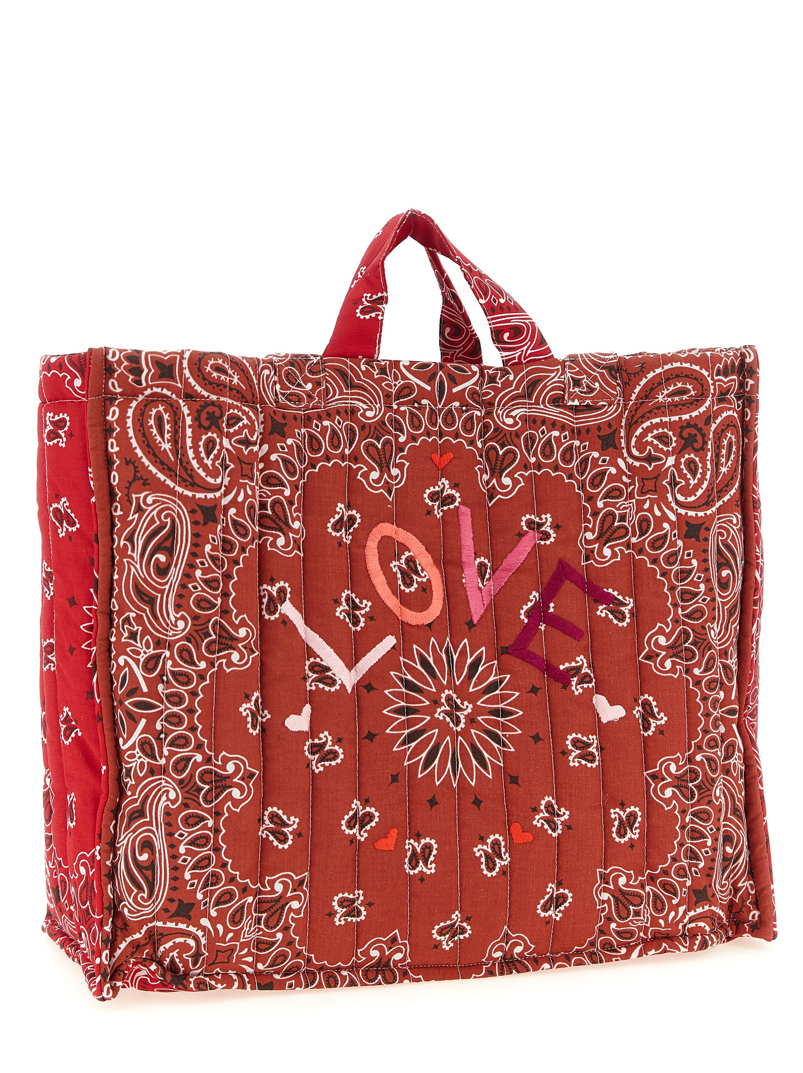 ‘Cabas’ maxi shopping bag in quilted and padded cotton with ‘Bandana’ print, front embroidery, short hand handle, long shoulder handle.