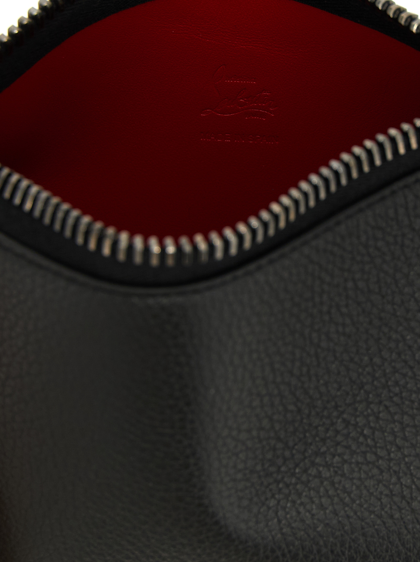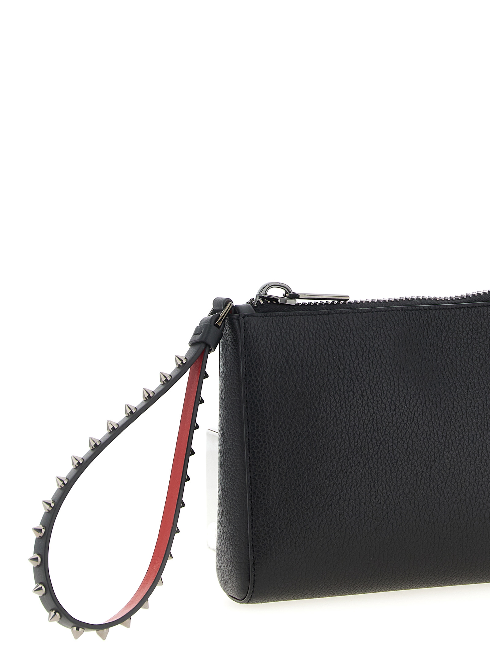 ‘Cabata’ hammered leather clutch with zip closure, studded handle, front logo.