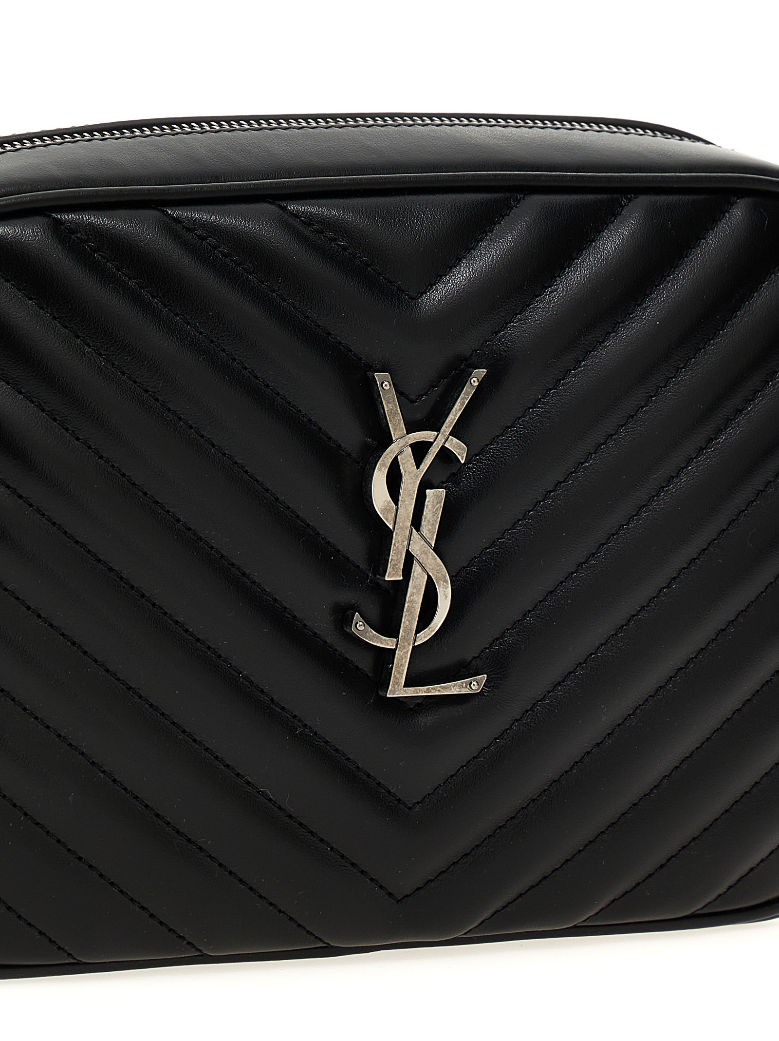 ‘Camera Bag Lou’ quilted leather crossbody bag, front metal logo, zip closure, adjustable shoulder strap.