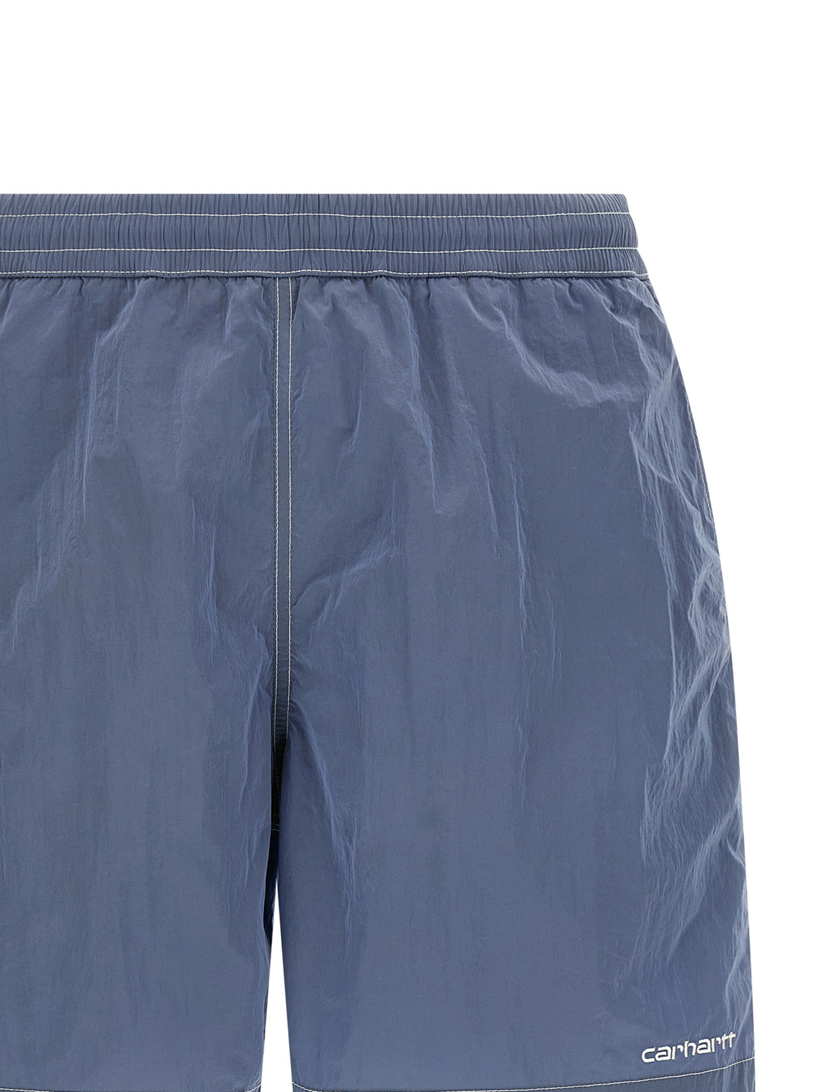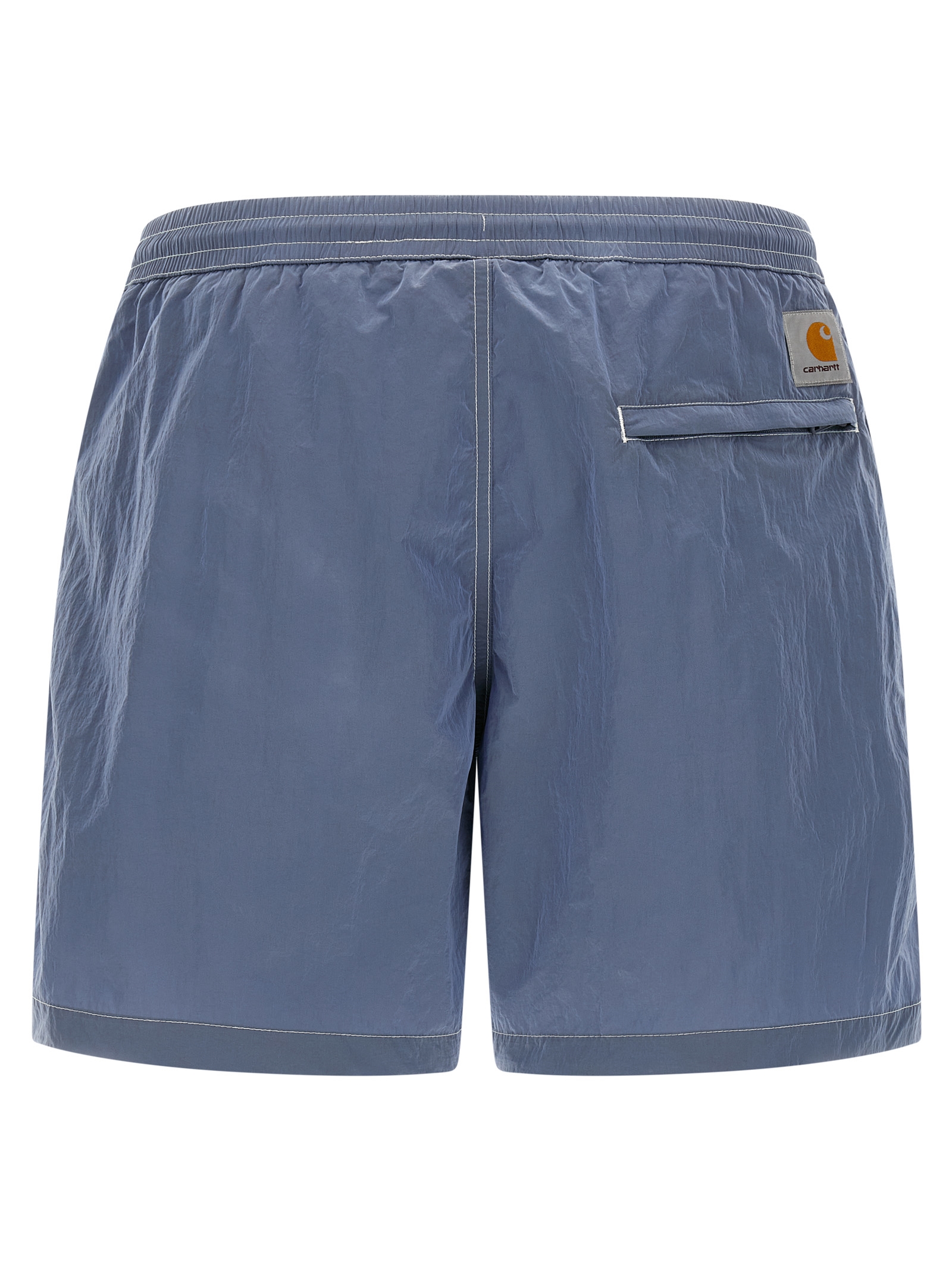 ‘Canby’ swimsuit in lightweight waterproof nylon taffeta with contrast stitching, front logo embroidery, drawstring elastic waistband, pockets, back logo patch, inner mesh briefs.