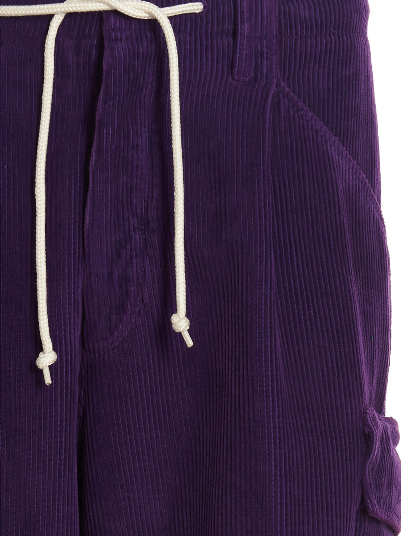 ‘Cargo C’ corduroy trousers with button closure, drawstring at the waist, pockets and drawstring at the hem.