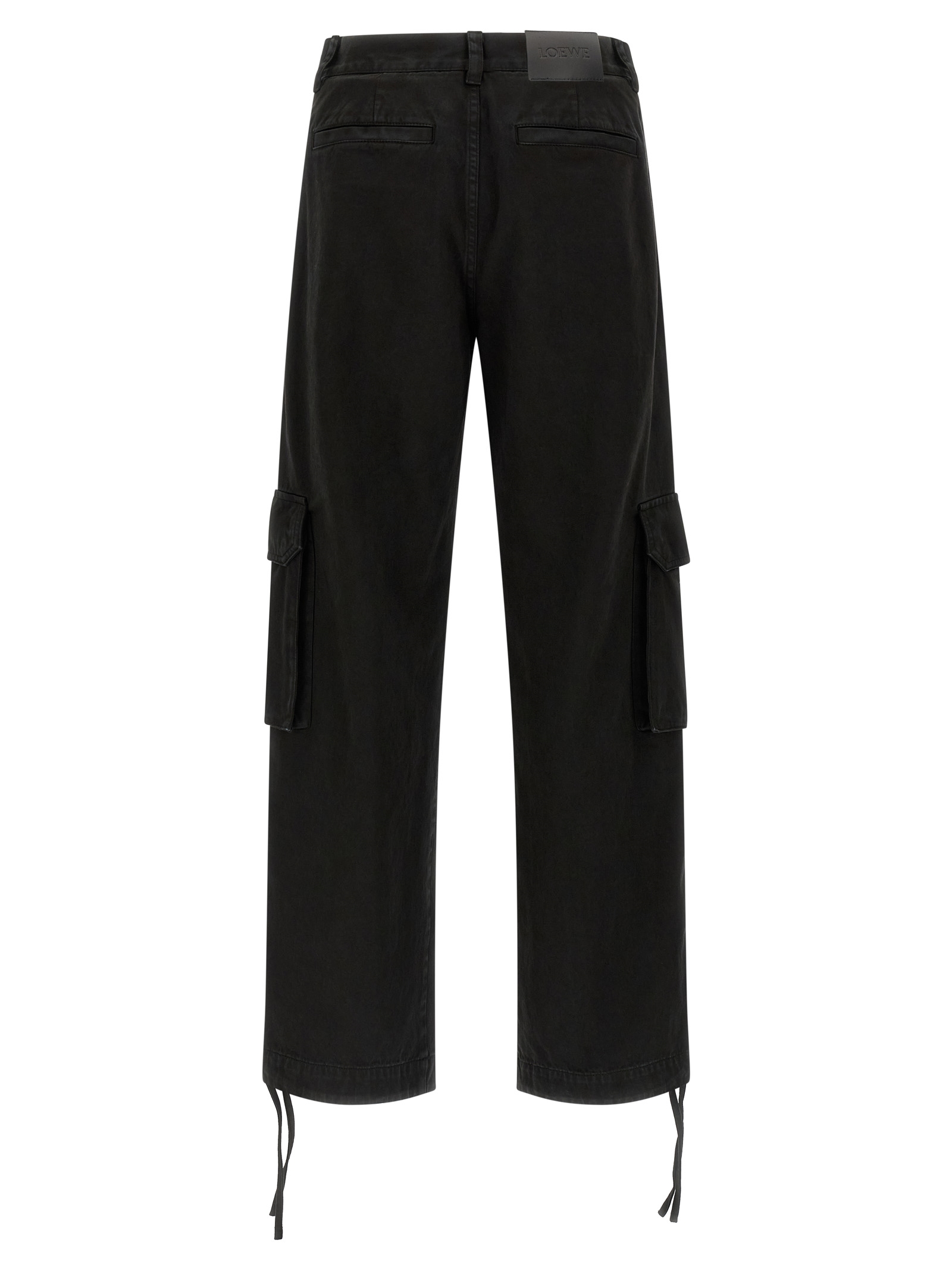 Cargo pants in lightweight washed cotton satin with side pockets, mid waist, wide and straight leg, front zip and button closure, pockets, and back leather logo tag.