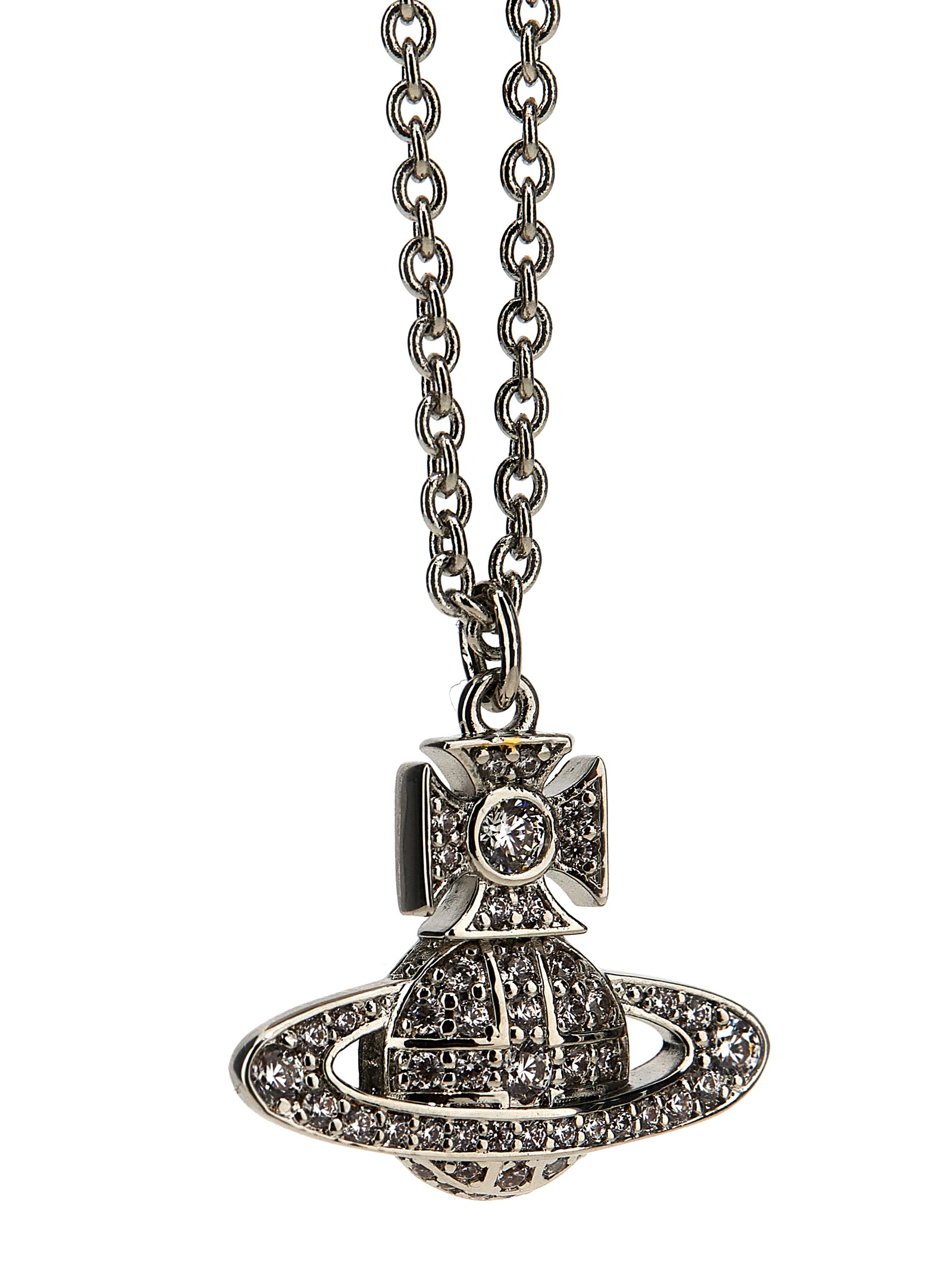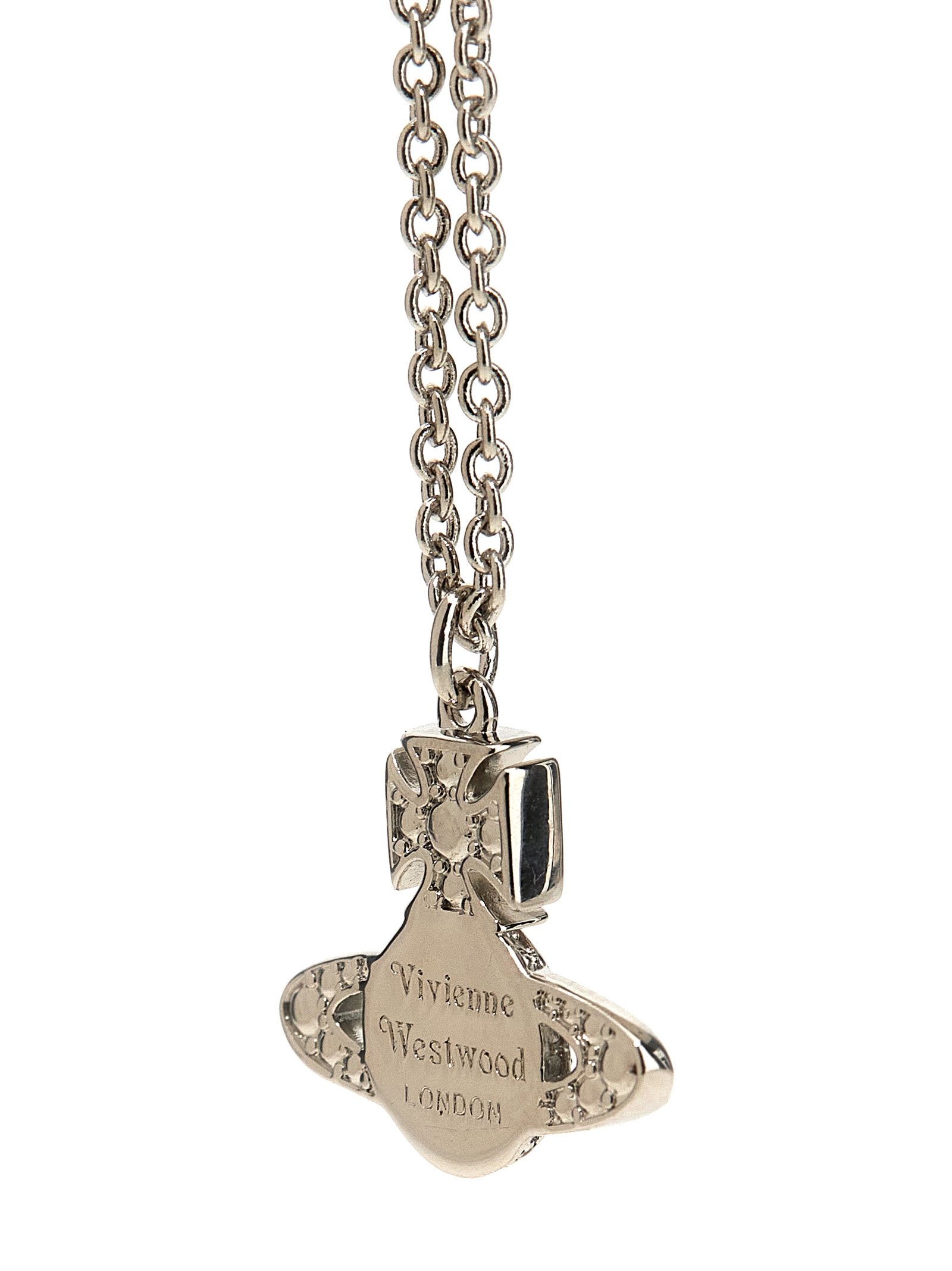 ‘Carmela Bas Relief Pendant’ necklace in silver metal, logo charm with crystals.