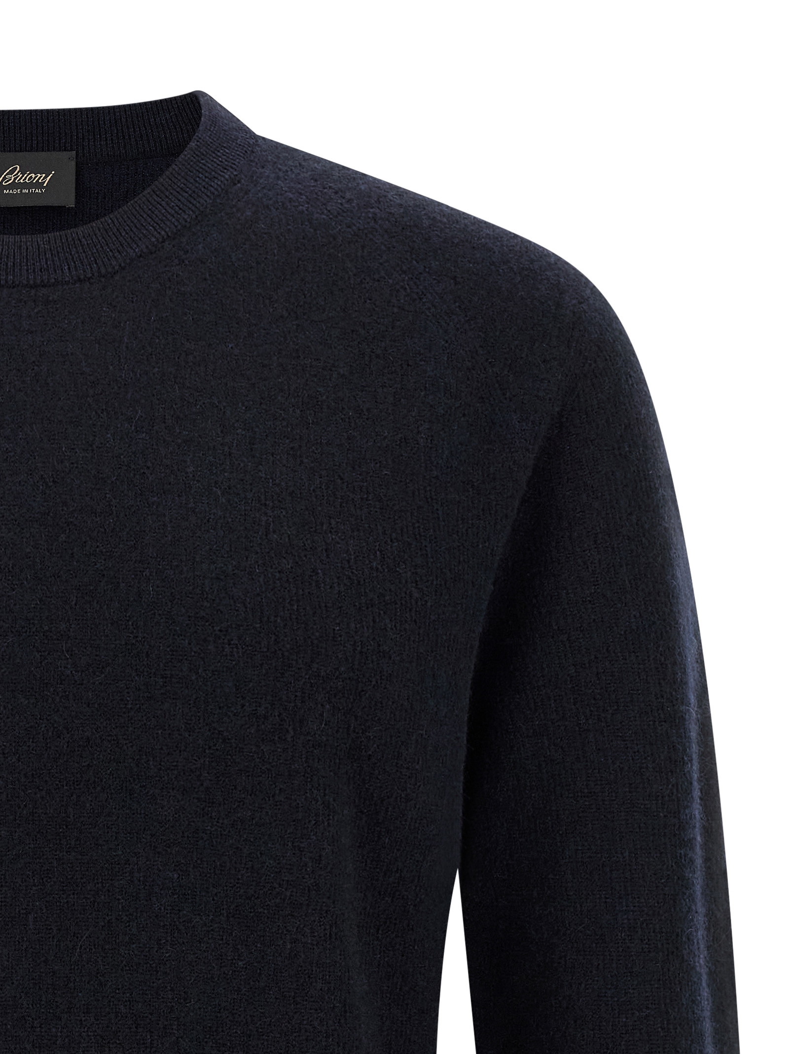 Cashmere and wool blend sweater with crew neck and long cuffed sleeves.