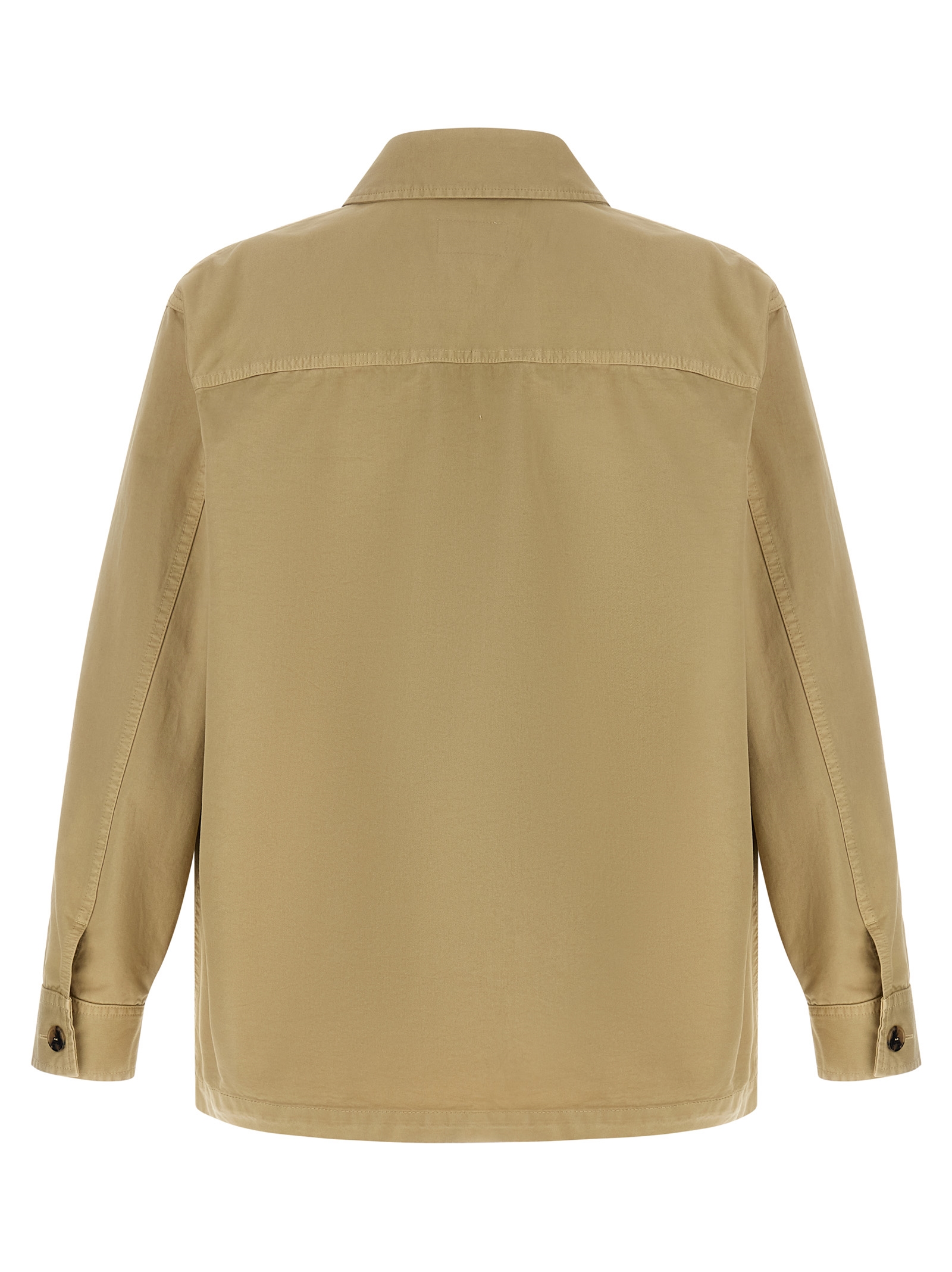 Cotton overshirt with pointed collar, breast pocket with tone-on-tone ‘Cassandre’ embroidered logo, front horn button closure, long sleeves with cuffs and slightly dropped shoulder, side slits on the hem.